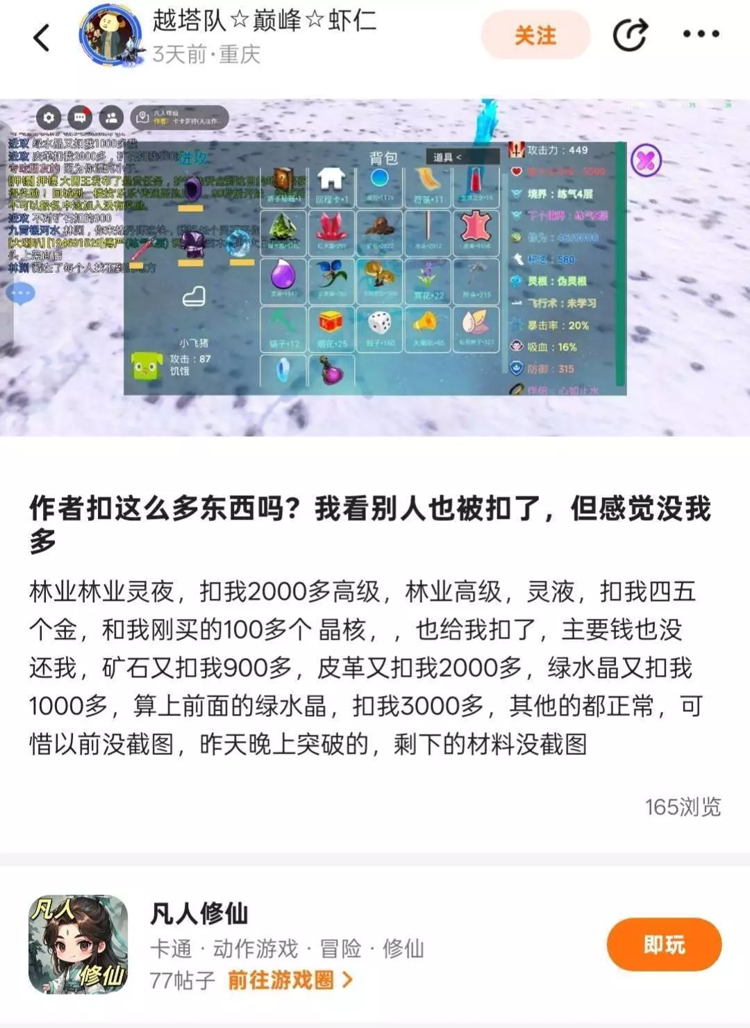 游戏bug严重作者不修复,玩家材料被扣作者不作为,作者到处封别人号挺用心,作者还喜欢偷偷删帖子。