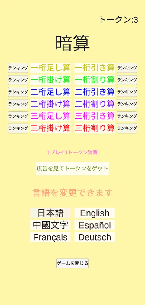 大脑训练心算,四道算术计算,4道选择题,1位数,2位数,3位数