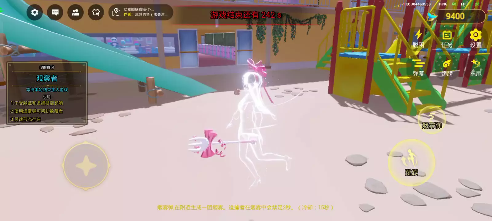 部分玩家反馈有时候会卡在滑梯或者其它位置,现在将脱困进行调整,可以回城到初始点位置。回城过程中无法移动,回城结束后恢复移动。