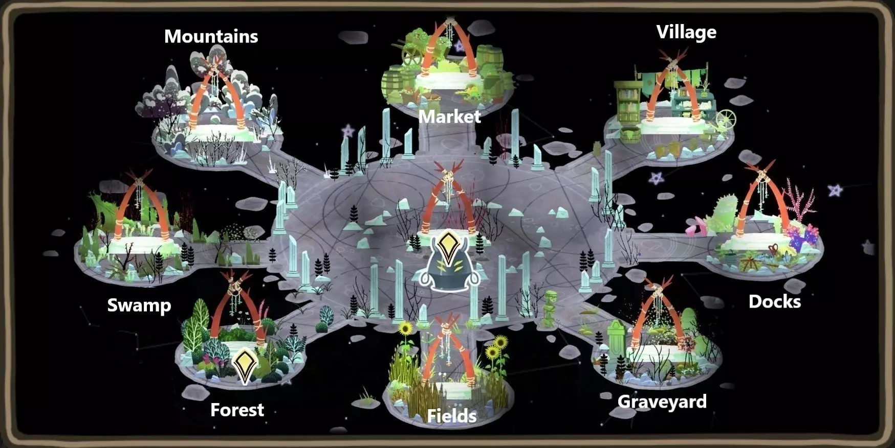 《女巫之森》在说明资源获取地点方面做得相当不错,但并未列出所有资源的所有获取地点。希望本指南能弥补这一点。这里不会提供显示物品确切位置的地图,即便是稀有物品也没有。大多数资源不会在地图上的固定位置生成,但稀有资源的分布范围相当集中,在其所在区域内不难找到。
