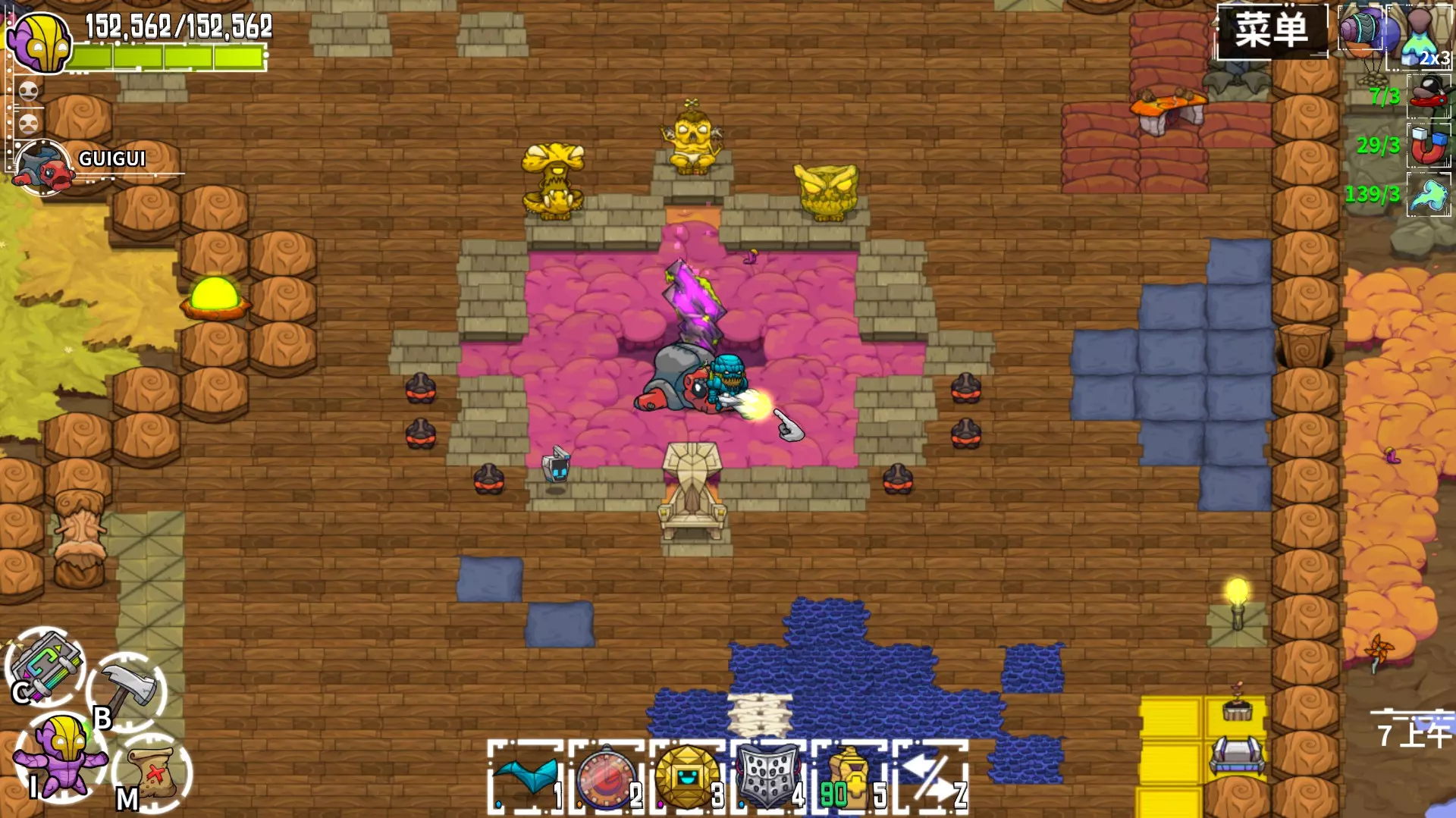 基础 如何获取宠物 沃姆皮特(原词:вомпиты)具有良好的抗毒和抗火能力,对电击也有一定抗性。作为你的帮手,它能为你提供物理防御和比特苏之力(原词:сила бицухи)。在所有宠物中,沃姆皮特通常是攻击敌人最频繁的,和苍蝇相比简直就是狙击手。它使用物理攻击,攻击范围相当大,有时会连续攻击两次,还可以通过采集它来获取制作所需的 reagents。 在游戏初期,你可以在波瓦波尔(原词:Powaapol)城镇的奥利(原词:Auly)处获得宠物。一般来说,怪物分为小型(最容易刷)、普通和稍大型,接下来是颜色变化的(强化版本),它们有大型和稍小型——这些才是需要刷的,目的是获取用于宠物进阶的灵魂,让宠物在战斗中变得更强并提供更好的加成。之后需要升级到能加工黄昏水晶,继续刷水晶直到掉落宠物最终进阶配方,然后用领主灵魂进行进阶。白颅健康蠕虫(原词:вомпитов (белоголовых здоровенных вомпитов))。第二种可获取的宠物是苍蝇——不推荐,它们在战斗中毫无用处,仅提供毒素概率和毒素强度加成。它们对火焰脆弱,对毒素有抗性——可以利用这一点轻松击杀它们,完全没有损失。接下来是章鱼——制作时需要大量章鱼,建议提前收集!该生物防火性能良好,对毒素有一定抗性,但容易受到电击伤害,不过它自身也能使用电击攻击——可以通过将其引到障碍物处来无伤击杀。其 bonus 为加速。 螃蟹对物理攻击有抗性,且对电流有良好的防护能力,但惧怕火焰 :) 它自身也能使用火焰攻击,不过可能会误伤到自己,这点需要注意利用 :) 其 bonus 为力量和火焰几率。 接下来是飞鼠(它们的掉落物在第二个世界也需要),飞鼠使用物理和毒素攻击,能提供移动速度和毒素强度加成——它对物理攻击有抗性。电鲶 - 对火焰攻击脆弱 - 同样可以被强制卡在障碍物中无伤击杀 - 但比章鱼和第一世界的最终头目【电龟】更难操作对物理伤害有一定防护,对毒素、电流和火焰伤害则较为脆弱。有几率释放电流攻击,建议搭配第一个跳跃技能使用,因为熟悉群体控制后,90%的情况下都能命中敌人。我只用【信标仙子】和【格挡之石】来刷怪,平时靠走位躲避,只打 bosses。信标仙子会自动提供恢复总生命值百分比的护符配方,格挡之石则是带有无敌领域的护符。平底锅转化为巴阿里护符,增加10%电击伤害,机器人移动速度提升5%,杰西卡的复苏技能恢复50%损失生命值,所有可充能物品充能速度加快15%