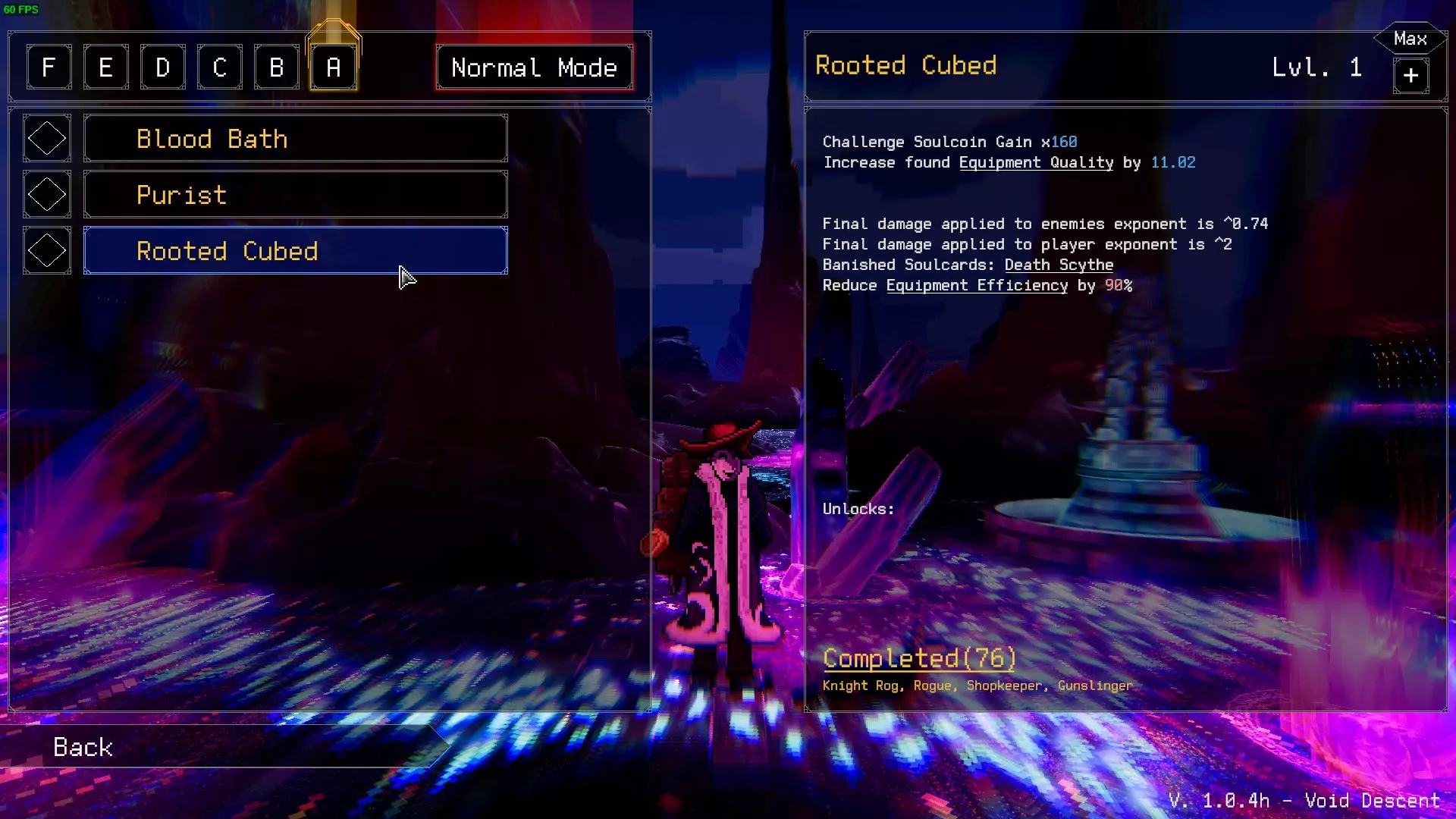 除了日常游戏中能找到的普通装备外,还有一些装备只能在特定挑战中获得,本指南将帮助你找到它们。 如何找到它们 首先需要说明的是,定制装备只能在特定挑战中找到。这类装备共有20个,其中5个比较特殊,需要同时进行多个挑战才能获得——具体来说,除B级挑战只需同时选择3个挑战外,其他均需同时选择4个挑战。 F级挑战 店主的假期:华丽帽子 - 提供一定百分比的商店折扣,且折扣可提升。 生病:光环 - 提升一定百分比的力量、移动速度、最大生命值和拾取距离。斯纳夫海德的最爱:弑贵者手套 - 增加对精英及更强敌人的伤害 斯纳夫海德的克星:弑君者手套 - 增加对冠军及更强敌人的伤害。效果比弑贵者手套更强,但对普通精英敌人无效。 多重挑战:适应性头盔 - 拥有额外的词条槽位 E级挑战 破损武器:训练师手套 - 装备后,你初始获得的武器等级会提升。需要在游戏开始时就装备,但由于其特性,在效果生效后即可更换。 悠长假期:祭司服饰 - 提高在商店中遇到极限突破服务的概率。 无魂者:灵魂罐 - 装备期间,你的最终魂币收益将根据你的过量击杀次数进行倍数计算。【残缺:虚空视界】:大幅提升虚空掉落几率,这是少数能提升该几率的途径之一。 【神经丛的施虐欲:神圣十字护手】:根据挑战魂币倍率提升最终威力。 【多重挑战:适应性护胫】:拥有额外的词条槽位。 D级挑战 【双持:骑士吊坠】:建议刷取多个吊坠。每个吊坠都关联着不同的武器,在回合开始时佩戴它,会在你选择的武器基础上额外获得该关联武器。因此,只要有耐心,你就能获得一对武器,轻松实现稳定进化。 【诅咒:英勇之戒】:提升精英怪和冠军怪的经验值掉落。 【费尔南达的层级地狱:染血尖刺】:每通过一个关卡,提升腐蚀倍率。 【多重挑战:适应性轻/重型板甲】:拥有额外的词条槽位。轻/重修饰词允许不同角色使用适应性版本的胸甲。 C级挑战 快速通行:适应 leggings - 每个区域增加伤害减免 店主的回归:黄金 plate 盔甲 - 超额击杀时获得金币 季风风险:血色伞 - 提供净化加成,该加成随等级提升而降低。对于以高腐化值开始的一局游戏很有用。 维尔德的耐力:迪里安的马具 - 显著提高 Wild card 的掉落几率。多重挑战:适应性 leggings(额外词条槽位) B级挑战 街机模式:忍者足具(减少一击保护冷却时间) 超载模式:专家单眼镜片(提高获得更高品质装备的几率) 灵魂模式:塔盾(降低一击保护的生命值需求) 冰钢模式:钻石指节(提高穿刺伤害加成) 多重挑战:适应性手套(额外词条槽位) A级挑战 血手模式:罪人之手(同时增加腐化值与净化值,且精英击杀额外增加腐化值。此外,还拥有三个额外词条:第一个为腐化值通用倍率加成,第二个基于玩家等级增加腐化值,第三个同样为基于玩家等级的腐化值倍率加成)和平主义者:漫游行者 - 装备此道具完成挑战时,会记录该挑战及其挑战等级。在新游戏中装备此道具会使其在本局游戏中锁定至角色,并将记录的挑战添加到当前游戏中。该靴子还带有敌人数量倍率和负面的关卡需求倍率。 扎根:超立方体流形 - 获取该装备时,会根据其随机生成结果提升或降低随机装备的等级。 扎根:无尽生长之根 - 超额击杀精英怪或冠军怪会提升玩家的有效等级。不会额外获得卡牌,但会影响那些基于玩家等级提升强度的装备或卡牌。无魂冠军:信仰斗篷——这件装备虽从技术上看是单个物品,但实际上有多种不同版本,每个版本都基于一种元素。所有版本都拥有相同的核心独特词条:提升对应元素类型的掉落率、增加魂币获取量,以及根据元素掉落率额外增加魂币获取量。次要词条大致与元素主题相关,部分斗篷带有4到3个负面词条,例如暗影版本;而像太阳版本则会提供通用经验值提升词条,并附带一个随机负面词条。 原版:专家之视——装备时会给予一个预先选择的天赋。该天赋在你发现这件物品时确定。血浴:血之印记 - 基于腐蚀值提供概率,让你从其他挑战中获得独特装备。 纯粹主义者:递归多胞体 - 提高杂项卡片的最大等级上限,同时降低其他卡片的最大等级上限。运气好时非常有用,否则就很垃圾。 纯粹主义者:超立方体 - 物品升级24次后解锁能力。我自己还没做到这一步,所以目前这个物品描述还不完整。 纯粹主义者:谦逊裹布 - 基于未使用的被动天赋槽位,通过乘数提升来增加各种属性。