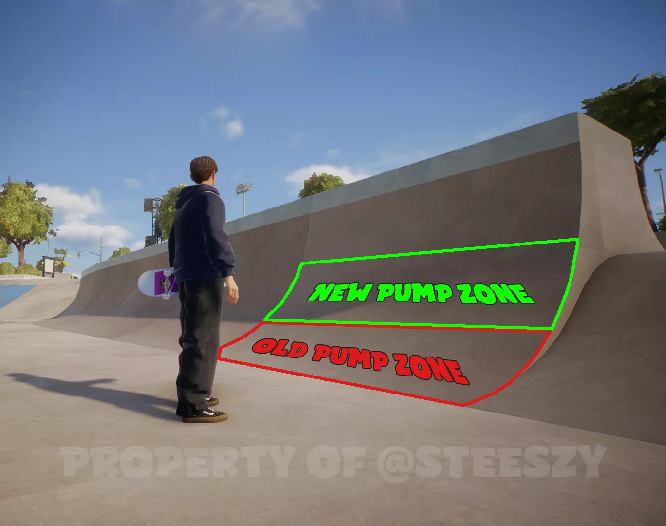 如果降低最大数值,你会发现按下扳机时角色能深入更多。只需将数值降低到完全按下扳机时能抓住滑板即可。