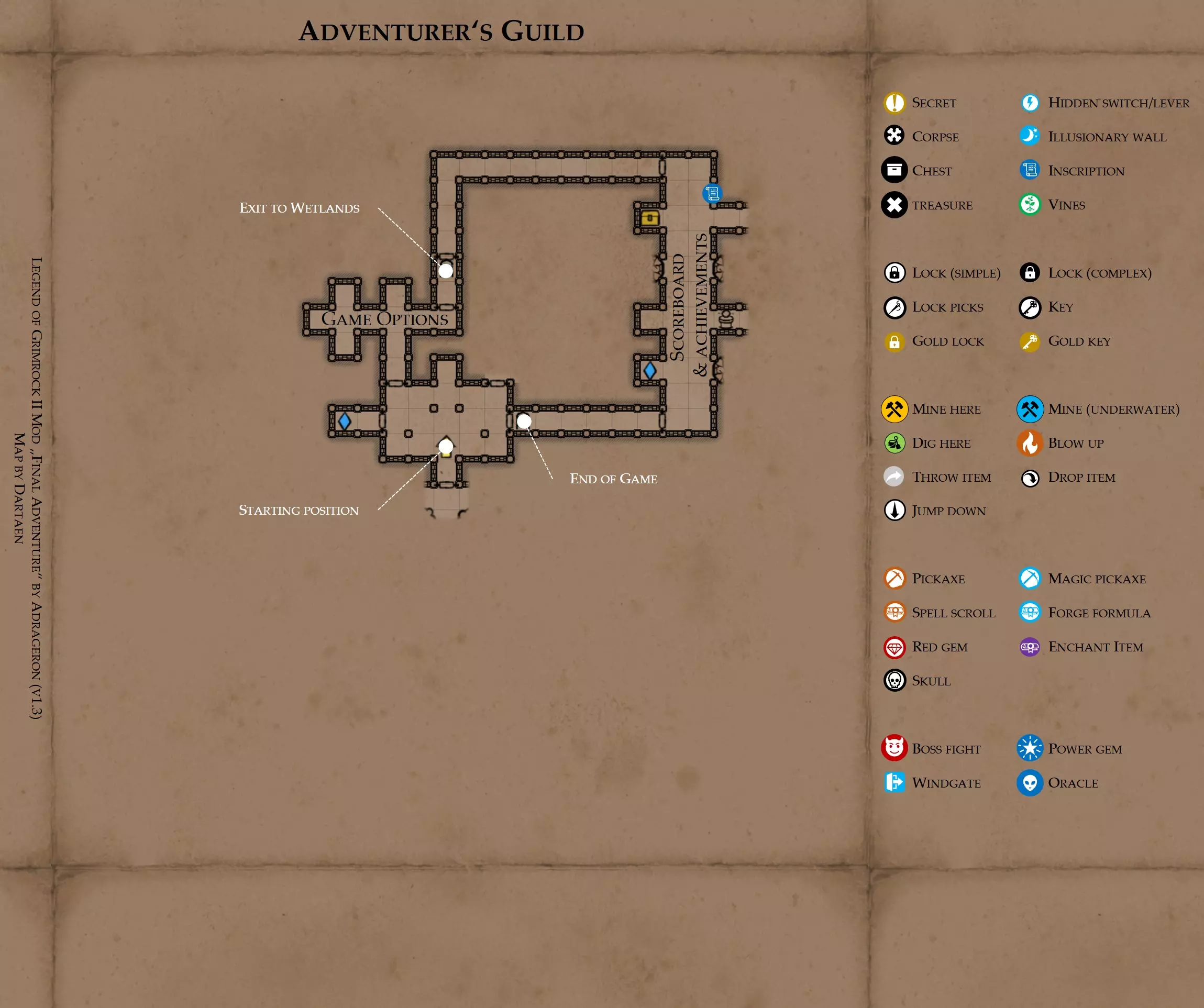 控制台及其使用方法,因为相关信息较为分散且难以查找。 简介 我已经了解了不少关于这款游戏控制台的使用方法,而相关信息却出奇地难找,所以我会分享我所知道的重要内容。 首先,你需要启用控制台。进入文档,依次打开Almost Human、《魔岩山传说2》,用文本编辑器打开“grimrock.cfg”文件。在该文件中,找到“console = false”这一行,将false改为true。之后,在游戏中,按~键即可打开控制台。如果你的键盘没有该按键或按键无效,请查看文件中“consolekey”行的数字,或许可以将其更改为其他数值。可搜索“key numbers”了解相关说明。你可以使用左右方向键来回滚动光标,使用上下方向键在之前的命令之间切换。控制台接受粘贴的命令,所以你可以直接将命令复制进去。请注意,打开控制台不会暂停游戏。 基础命令 所有“#”均指代你选择的数字。出现“”的地方,请在其中填入文本。不过根据命令的不同,后者可能并非必需。所有命令区分大小写。任何使用“set”的命令也可以用“get”代替,并且在“print()”的括号中包含“get”命令会将结果输出到控制台。 spawn("",#,#,#,#,#,"") 创建物品、对象或敌人。在第一个引号中填入实体的内部名称,其他参数均为可选。参数顺序依次为:楼层、X和Y坐标、朝向、海拔高度以及自定义ID。你可以在地下城编辑器中查看内部名称;它们位于左下角的列表中。 spawn("").item:setStackSize(#) 创建一个物品并设置其堆叠数量。对不可堆叠物品使用此命令需自行承担风险。 setMouseItem(spawn("").item) 通过让鼠标持有物品来生成某物。删除外层括号之间的所有内容,可改为删除鼠标当前持有的物品。 print(getMouseItem().go.name) 这将获取你鼠标所持有物品的内部名称。对于生成模组物品非常方便! party:setPosition(#,#,#,#,#) 设置你的位置。这些数字依次表示目标X和Y坐标(0-31)、朝向(0-3)、高度(0+)以及楼层(1-地城的总楼层数)。超出这些范围的值会导致游戏崩溃。此外,出于某种原因,这些参数的顺序与生成命令中的不同。 print(X:getPosition()) 获取某个物体的位置。实体通常命名为“entity_name_#”,其中entity_name是实体的内部名称,#是数字。使用“party”可获取你自己的坐标。此处不要留空! 给出的坐标顺序与setPosition相同,但会跳过一个值,具体是哪个尚不确定。 GameMode.setTimeOfDay(#) 设置一天中的时间,取值范围为0到1.9999999999999。0表示白天,1表示夜晚。 队伍命令 这些命令仅对玩家角色生效。 party.party:heal() 完全恢复所有角色,效果如同使用了治疗水晶。 party.party:setMovementSpeed(#) 设置移动速度。1为正常速度。包含【图鲁姆模式】的模组会将此值设为1.5。 party.party:getChampion(#): 用于与特定角色相关的命令,将#替换为所需角色的物品栏按钮。 party.party:getChampion(#):setName("") 更改对应角色的名字。 party.party:getChampion(#):setSex("") 更改对应角色的性别(male/female)。此命令和上一个命令本身没有内置的游戏效果,但模组可能会为它们添加功能。 party.party:getChampion(#):setRace("") 更改对应角色的种族(human/minotaur/lizardman/ratling/insectoid) party.party:getChampion(#):setPortrait("") 更改对应角色的肖像。将空白处替换为文件路径,不过不确定路径从哪里开始。 party.party:getChampion(#):trainSkill("",#,bool) 提升对应角色的某项技能等级X,X可为负数(在引号中填入技能名称,建议不要将任何技能等级提升超过5)。Bool值可设为true或false,用于控制是否影响技能点,未指定时默认值为true。此函数不会使技能点低于0,但即使没有技能点也能生效。 party.party:getChampion(#):addTrait("") 为角色添加指定特性。特性的内部名称较难查找,但通常符合直观预期。可查找【grimrock 2 asset pack】以获取原版资源,从中查找特殊特性的名称。 party.party:getChampion(#):addSkillPoints(#) 增加或减少技能点。此函数可使技能点低于0。 party.party:getChampion(#):levelUp() 选中的角色提升一级。此操作永久生效;没有任何指令可以降低角色等级。 party.party:getChampion(#):setBaseStat("",#) 将对应角色的某项基础属性修改为#,#可以为负数。将空白处替换为目标属性,属性列表将在下一条指令下方详细说明。属性修改后仍会叠加各项修正值,因此可能需要多次尝试才能达到你想要的准确数值。 party.party:getChampion(#):upgradeBaseStat("",#) 与上一条指令类似,但此指令是在当前属性值基础上增加#,而非直接替换。#可以为负数,即减少该属性。可修改的属性:生命值、最大生命值、能量值、最大能量值、力量、敏捷、活力、意志力、防护值、闪避值、元素抗性X(X代表元素类型)、最大负重、经验获取率、食物消耗率、生命/能量恢复率、冷却缩减率 负面属性在非预期情况下往往会产生奇怪的效果。尤其是恢复类属性,若为负值,实际上会减少生命值/能量值。 简单脚本 以下是我开发或找到的一些脚本,你可以尝试使用。欢迎分享你开发的有趣新脚本!我很想要一个能让隐藏按钮更容易被发现的脚本! 更新:我已经找到了一个能实现该功能的模组! [通用伪图鲁姆] 队伍。队伍:获取角色(1):提升基础属性(冷却速率,100) 队伍.队伍:设置移动速度(1.5) 队伍.队伍:获取角色(1):设置肖像(assets/textures/portraits/toorum.tga) 为获得最佳体验,仅创建1个角色。 更改肖像为可选操作。 【技能点转属性】 队伍.队伍:获取角色(#):添加技能点(-1) 队伍.队伍:获取角色(#):提升基础属性(力量,1) 队伍.