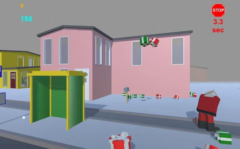 你应该打破窗户和门,把礼物扔进屋里。 您必须为每个房子至少投入 1 份礼物。如果你不及时扔掉它,你就会停下来,计时器开始计时。当你失去所有的时间,游戏结束