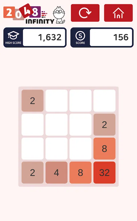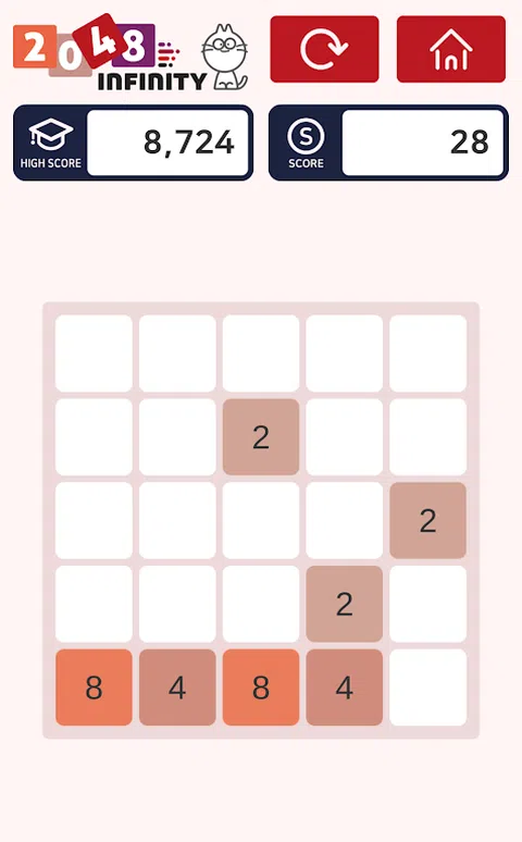 滑动并与相同的第二个磁贴合并。 加入这款“2048:infinity”益智游戏,进入“2048:infinity”板块! 这个48! 并且可以在 NxN 网格上播放! (3x3、4x4、5x5) 让我们挑战每个 NxN 网格的全局分数