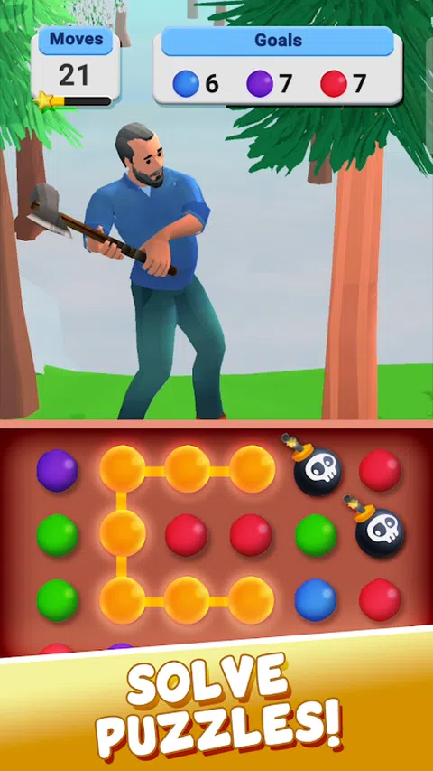 成为荒野中心被困幸存者的英雄,面对各种元素,开始史诗般的任务,让他们活着。 当您连接彩色匹配点以完成基本任务以尝试帮助他们生存时,每一步都很重要。连接相同颜色的泡泡,砍柴作为避难所,生火取暖,开采石头作为工具,钓鱼获取食物等等。每个脑筋急转弯级别都是关键步骤,将决定他们在野外的命运! 你能用你的逻辑解决技巧来战胜自然,克服一切困难生存吗