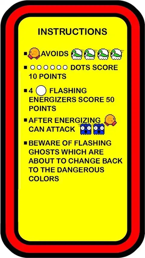 游戏的目的就是控制游戏的主角吃豆人吃掉藏在迷宫内所有的豆子, 并且不能被鬼魂抓到。迷宫的四个角落有大的闪烁点称为大力丸, 提供吃豆人一小段时间, 可以反过来吃掉鬼魂。鬼魂在这段时间内会变成深蓝色, 会往反方向逃逸, 而且比平常的移动速度慢。当鬼魂被吃掉後, 会飞回鬼屋, 并再生而回复正常的颜色。当深蓝色的鬼魂反白闪动时, 表示大力丸的效力即将消失, 而随着游戏的进展, 大力丸的有效时间会越来越短。如果有任何鬼魂抓到吃豆人,他就会失去一条生命; 当所有的生命都失去了, 游戏就结束了。每一关卡还会在中心框的下方出现水果, 每关卡出现两次; 每个水果会有不同的奖励积分 (100~5,000)。每5000分可额外获得一条生命。希望你能乐在其中
