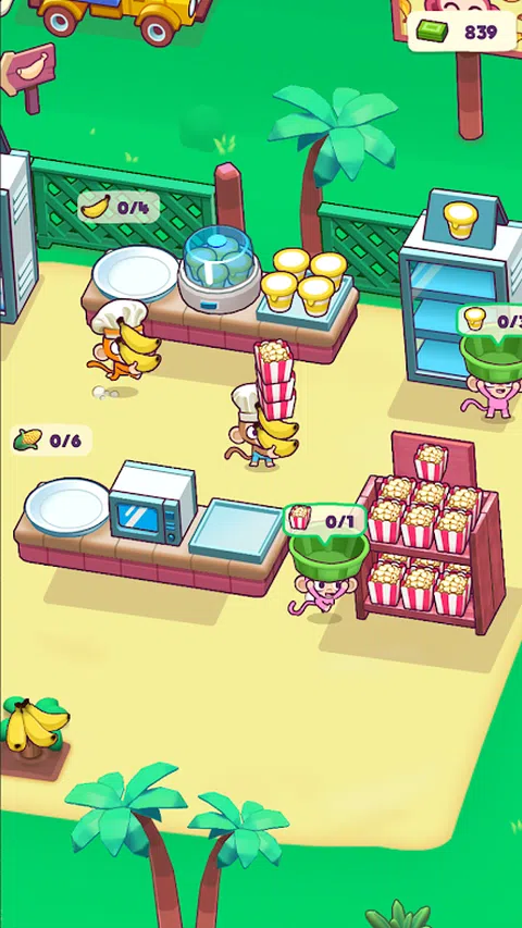 Monkey Mart 是一款令人兴奋和迷人的手机游戏,带您进入一个异想天开的旅程,进入一个猴子经营自己的超市的世界。准备好沉浸在充满活力和熙熙攘攘的环境中,这些可爱的灵长类动物在这里培育并向其他动物客户出售各种物品。 作为玩家,您将扮演勤奋的猴子企业家的角色,负责管理和扩展猴子市场。你的主要目标是帮助猴子发展业务,确保超市蓬勃发展,成为附近所有动物的目的地。 Monkey Mart 的游戏机制结合了模拟、策略和时间管理元素。你的任务包括种植不同的作物,如香蕉、菠萝和椰子,为商店的货架备货。播下种子,浇灌植物,并看着它们在您的照顾下蓬勃发展。收获成熟的农产品,并将其精美排列以供展示。 然而,经营一家成功的超市不仅仅是水果和蔬菜。Monkey Mart 提供广泛的产品以满足各种需求。从新鲜出炉的糕点和美味甜点到家居必需品甚至时尚服装,您必须精心策划诱人的库存,以吸引多样化的客户群