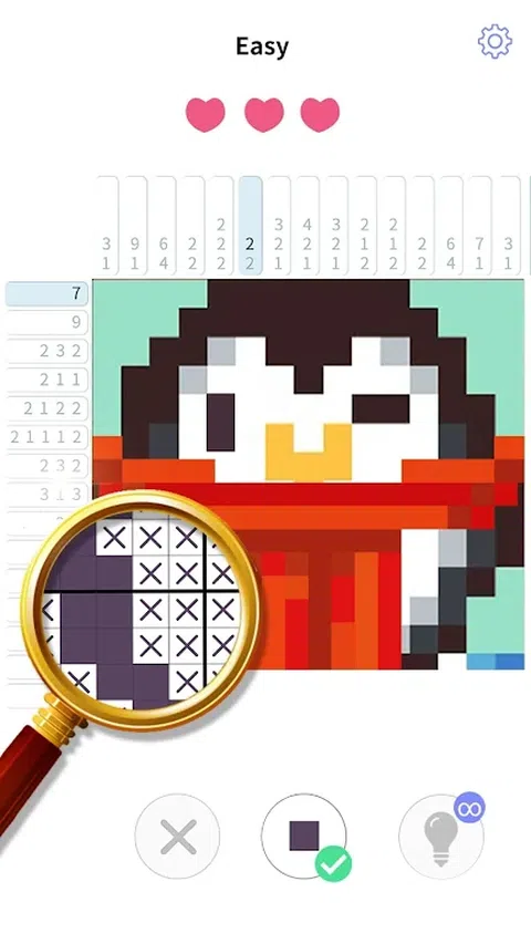 用 Nonogram 点亮每一天! Nonogram(也称为按数字绘画、Griddlers、Pic-a-Pix、Picross、Picture Cross、Pixel Puzzles),解决逻辑数字谜题以揭开图片!探索令人惊叹的 Nonogram 逻辑谜题世界。 Nonogram 是图片逻辑谜题,其中网格中的单元格必须根据网格侧面的数字着色或留空以显示隐藏的图片。 如果您喜欢数独、数位、填字游戏、拼图和其他脑筋急转弯等益智游戏,您一定会喜欢我们的 并开始您的 Picture Cross 冒险
