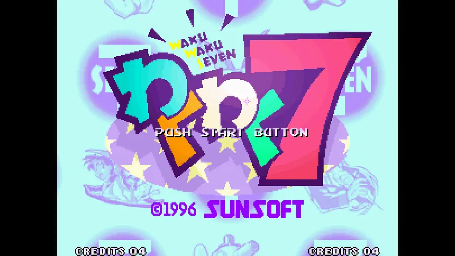 街机平台《火热火热7》(日语原名:わくわく7;英语原名:Waku Waku 7)由SUNSOFT开发并发行的2D卡通风格格斗游戏,于1996年登陆SNK MVS街机基板并首发,是街机黄金时代极具特色的第三方格斗佳作,凭借轻快氛围与创新系统收获玩家青睐。 故事设定于虚构世界,七颗蕴含强大能量的“Waku Waku珠”散落各地,每位角色持有一颗,为实现各自心愿展开对决,目标是集齐七颗珠子达成愿望。游戏可选7位核心角色,实际登场含乱入的“年糕君”与BOSS共9位,人设鲜活卡通,风格迥异且技能特色鲜明。 玩法上优化操作门槛,新手易上手,核心亮点为“Waku Waku槽”能量系统,可通过攻击积累能量(最多七层),解锁强化必杀技、超必杀技及无法防御技。画面支持近远景自动拉伸,搭配清晨、黄昏、夜晚三种时间变化效果,强化对战沉浸感。支持双人对战,凭借丰富招式组合与轻快战斗节奏,成为街机厅经典怀旧作品。