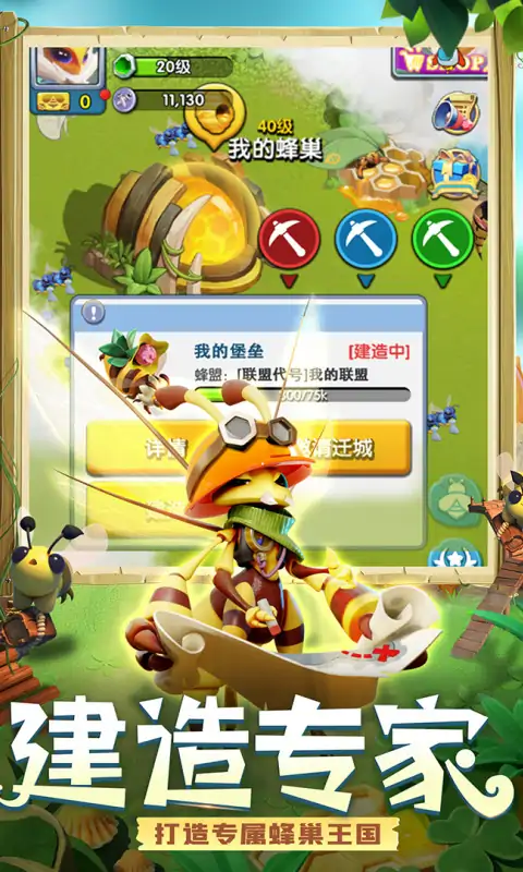 这是一款蜜蜂视角的模拟经营类型游戏,在游戏中您将扮演蜜蜂王国操控者,操纵蜜蜂们从无到有建设蜂巢、训练兵蜂,建立跨时代的蜂蜂王国,最终称霸丛林!