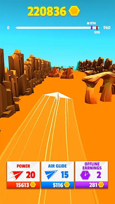 你能在棕榈树和船只之间操纵你的纸飞机吗?或者岩石,风车甚至峡谷拱门?然后飞到火柴上做滚桶!准确把握你的投掷时间,以获得额外的速度,并飞越所有障碍!你的纸飞机能飞多远?
