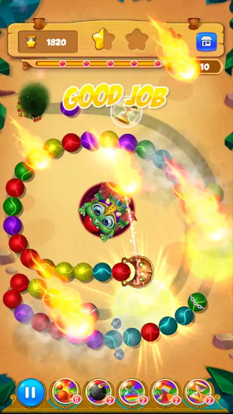 具有众多元素的土地:火,雪,沙漠,森林. 你的任务是开辟许多新土地 射击相同颜色的弹珠以将其摧毁。 我们走吧! Zumbla:大理石丛林