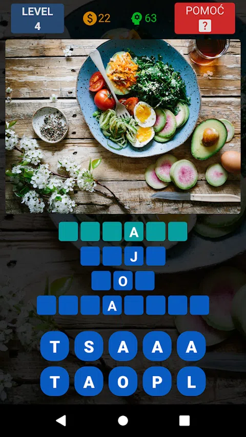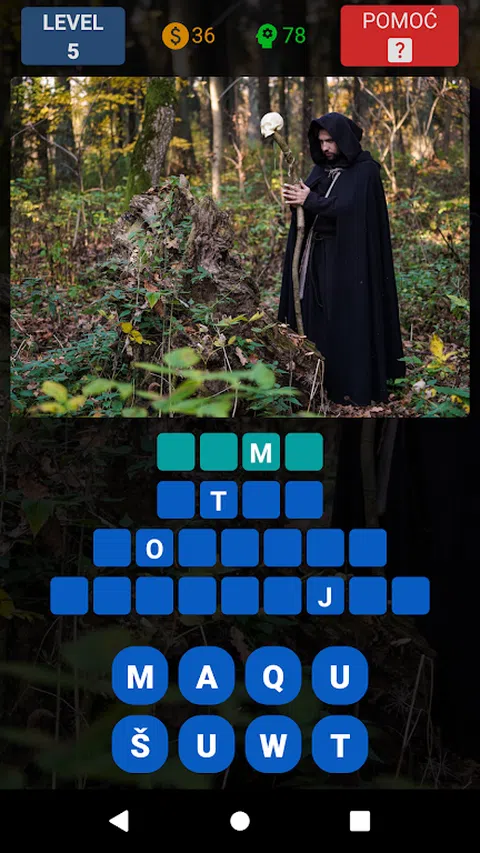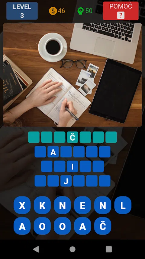 巴尔干方式的文字游戏。根据一张图片猜测每个级别 4 个单词。每个单词都是独立的,并且在每个单词中都会显示一个字母作为开头。对于每个完成的单词和级别,您都会获得硬币和积分。您可以使用硬币来帮助解决困难的关卡,发现一个一个错误的字母。如果你的金币用完了,你可以自愿观看广告以获得奖励。 该游戏不需要注册,仅包含自愿广告