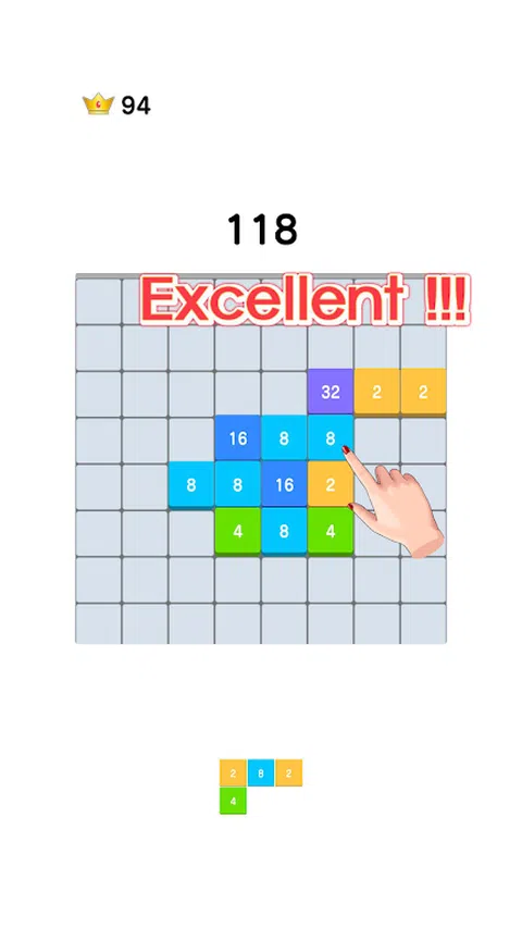 ■操作简单 只需一根手指即可轻松操作!只需点击带数字的方块来移动它们! 放置方块,使它们重叠 将相同数字的方块堆叠在一起! 例如,2 和 2 等于 4。 通过使数字更大来争取高分 您堆叠的方块越多,数字就越大