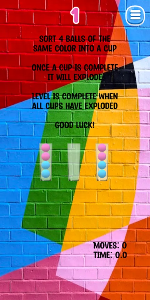 将 4 个相同颜色的球分类成一个杯子,使其爆炸。 完成所有 10 个级别以完成游戏并攀登排行榜