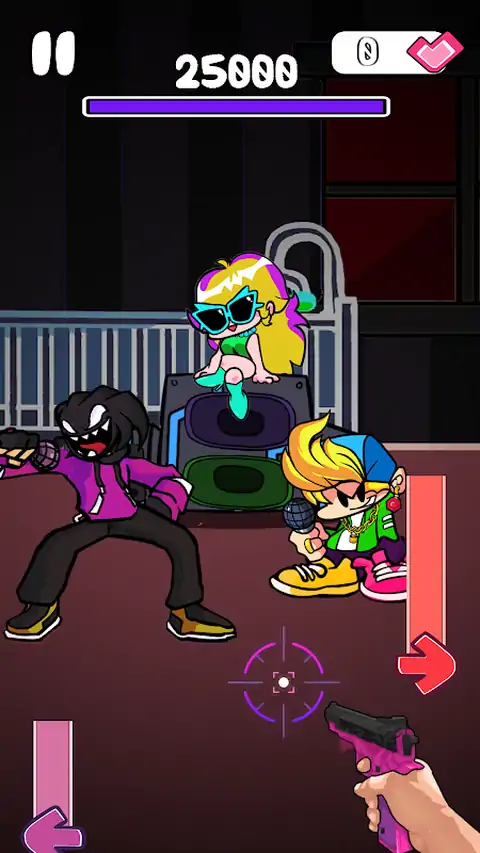 每个星期五晚上,我们都会邀请您参加一个称为的特别活动 FNF音乐射击游戏 参加音乐之战,您可以通过新的风格和角色体验新风格和角色的音乐 FNF射击 模式。 让我们摇滚音乐! 嘿,男孩和女孩!你准备好怪异了吗 本金星期五晚上 ? 3 2 1让我们走! 我们为您带来了基于节奏的战斗的全新歌曲和mod FNF音乐射击游戏 游戏。 特征 用100多种枪口解锁和更新独特的收藏 男孩和女孩角色的各种皮肤 自定义您喜欢的角色:男友,Huggy,Sonic,Witty。 一击控制,易于播放 玩很多mods玩得开心! 播放FNF音乐射击游戏时的提示 选择任何皮肤喜欢的枪 当音乐运行时,您需要专注并正确拍摄 握住枪支以刺节拍。 避免错过立方体! 享受节奏并发现令人上瘾的挑战。 FNF音乐射击游戏