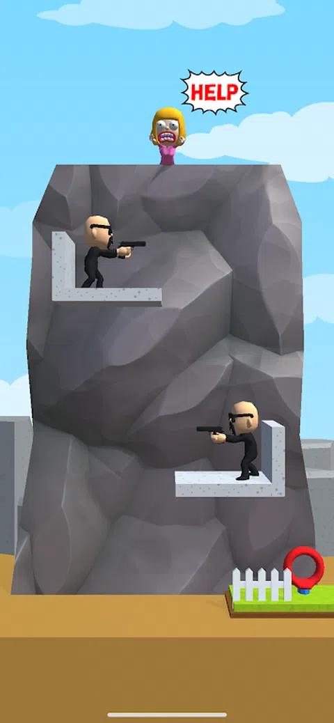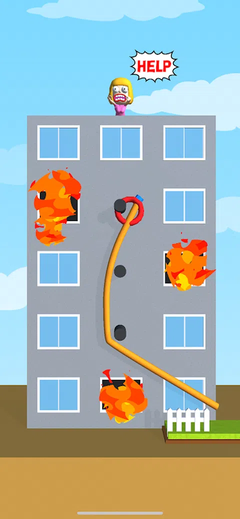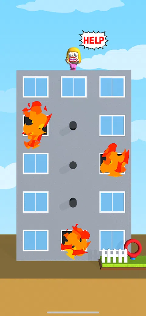 您可以随意控制绳索。将绳子固定在人身上,并通过没有危险的路线让他放下底部。 如果您在途中遇到火或杀手,游戏结束了