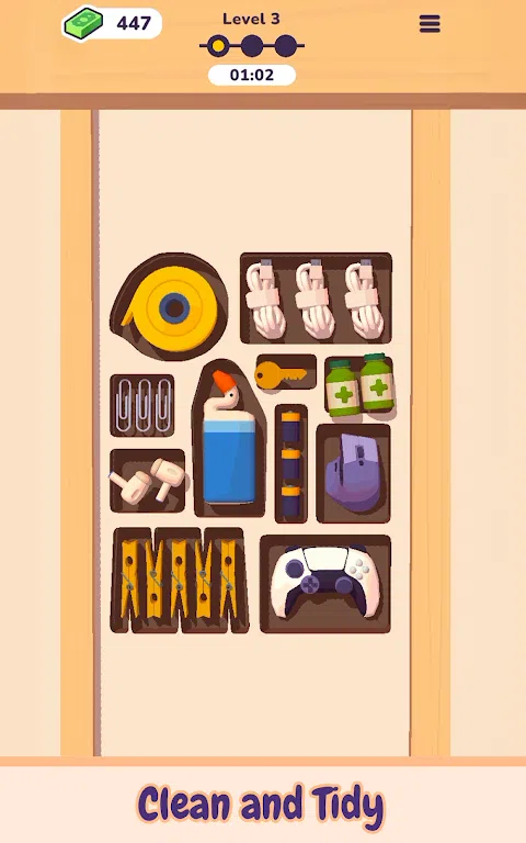 您是否更喜欢杂乱无章的空间,所有东西都有自己的位置?是时候组织你的生活,在征服混乱时成为整洁的英雄,一次一个抽屉。 当您尝试放下、交换和整理自己的方式以打造一个干净的家时,策略是关键。一定要提前计划好这个史诗般的谜题,否则你会发现自己手上的混乱比开始时更大