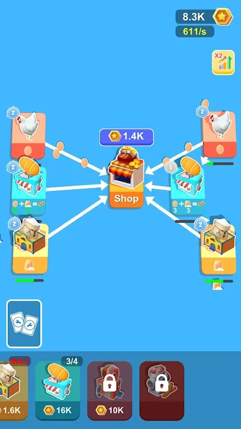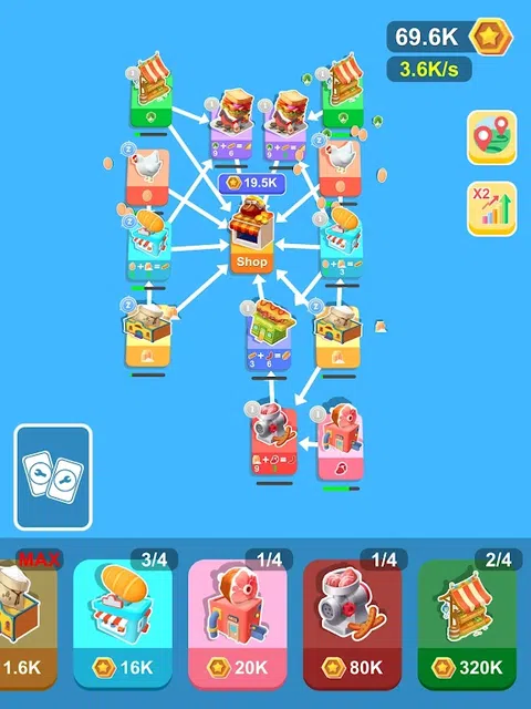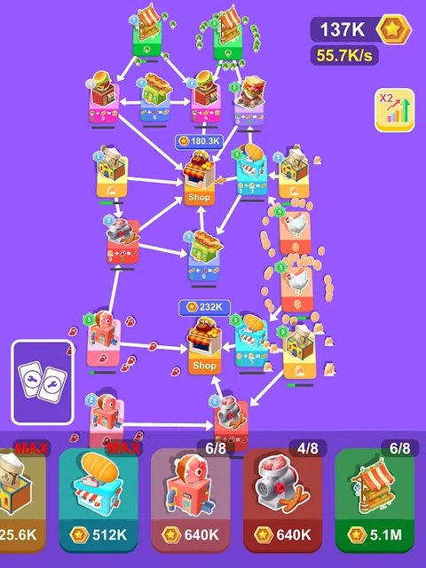 正在寻找一款有趣的休闲游戏,让您可以建立自己的卡牌工厂?不要再观望了!在我们的新游戏中,您可以购买卡牌、合并卡牌并将其连接起来,以创建一个惊人的生产和利润帝国。 每次合并,您都将解锁新的组合和可能性。将您的鸡连接到您的商店,观看它们下蛋并将它们飞过以出售赚钱。将鸡和面粉厂连接到面包机,开始生产美味的面包。 即使你的鸡没有连接任何东西,它们仍然会下蛋供你收集和出售。凭借交叉连接卡的能力,可能性是无限的。 那你还在等什么?立即开始建造您的卡片工厂,看看您能走多远