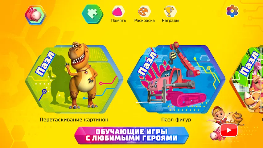 在 Turbosaurs 应用程序中,我们收集了幼儿和学龄前儿童发展所需的一切。以最喜欢的角色为特色的教育和丰富多彩的游戏是专门为训练孩子的记忆力、注意力和逻辑思维而设计的。 孩子们喜欢玩,这个免费的应用程序将帮助您玩得开心,玩得开心!该应用程序专为 1 岁以上的孩子设计,界面简单,导航方便。在游戏过程中,Turbosaurs 在完成任务时交流和鼓励孩子。 该应用程序包含以下教育游戏: 拼图 1. 拖放图片。孩子们看到了四张涡龙的剪影和四张照片。任务是将涡轮龙与其轮廓相匹配。 2.数字拼图。一张恐龙或汽车的图片出现在屏幕上,示意性地分为几个部分。然后将图像分解为其组成部分。任务是将所有组件与其轮廓结合起来。 3. 完成拼图。任务是将拼图的所有部分与其轮廓相匹配。孩子可以选择拼图的数量:6、9、12、20 或 30 个拼图。 内存(内存) 屏幕显示一个带有矩形卡片“衬衫”的字段。当你点击一张卡片时,它会翻到正面,上面有涡轮龙的图像。如果反转的一对卡片上的图片匹配,则它们被认为是开放的。任务是打开整个卡片领域。难度级别 - 每场 6、8、12、16、20 和 30 张牌。 染色 1.有趣的着色。从调色板中选择明亮的颜色,孩子用涡龙画图片。 2.填色。孩子可以选择不同的绘图工具:铅笔、画笔、蜡笔、纹理画笔和印章。 3. 绘图。孩子使用一整套绘图工具在一张空白纸上画画。 4. 霓虹灯。孩子在深色背景上用霓虹灯标记画画。 5.按数字绘制。孩子用数字画出最喜欢的角色的图片,一个接一个地添加阴影。 重要信息: 在家长设置中,您可以启用/禁用背景音乐、声音,还可以设置时间限制。 该应用程序是免费的,不包含广告。 来自涡轮龙的爱
