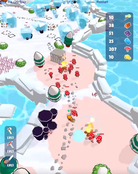 作为一名滞留在冰冻世界的飞行员,砍伐树木并收集资源以点燃篝火并解冻障碍。通过解冻元素,解开谜团并将妻子从家里救出来来解锁新区域。面对挑战,例如从侍奉猪王王子的蘑菇人手中救出幸存者
