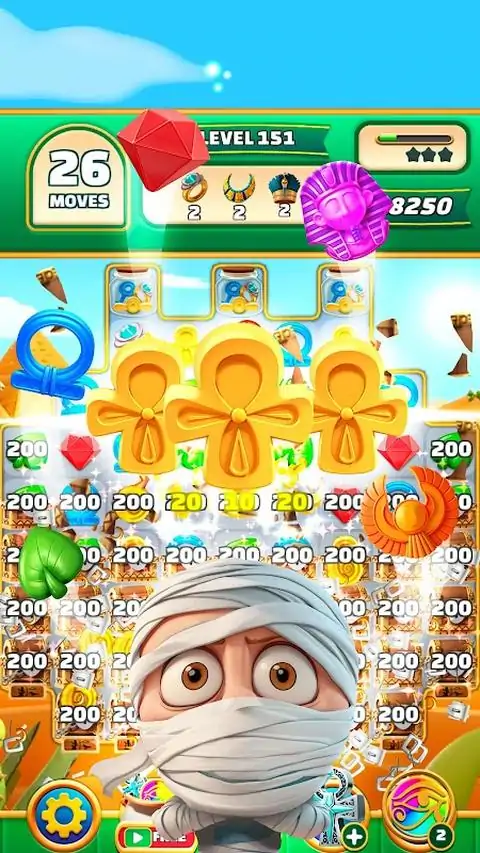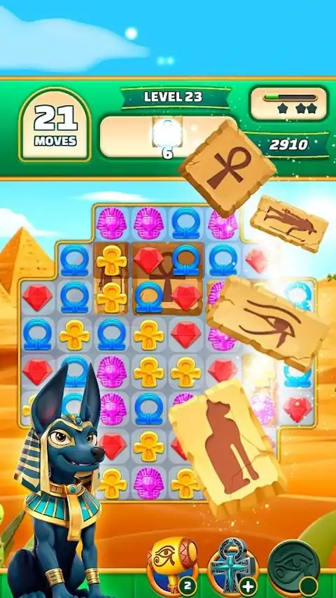 《神与宝石:埃及连连看》带您踏上一段史诗般的旅程,穿越时光来到古老的埃及。这款引人入胜的连连看冒险游戏将把您带到一个充满奇迹的土地上。沉浸于这个神秘文明的世界中,解开法老王的秘密。 准备好为壮丽的金字塔所震撼吧,它们耸立在沙漠之中,神秘的结构吸引着您去探索。随着您深入古墓之中,将遇到复杂的象形文字,它们蕴藏着揭示隐藏宝藏和无尽智慧的关键。 在复杂多样的谜题中穿行,每一步都让您离法老王的珍贵宝石更近一步。匹配各种形状和颜色的鲜艳宝石,巧妙地交换和对齐它们,制造爆炸般的连锁反应和强大的连击。每一次成功的匹配都将解锁神秘的圣器,并赢得众神的青睐。 神秘的斯芬克斯矗立在那里,守护着您,用谜语考验您的智慧和机智。解开这些令人费解的谜题,解锁古老的通道,揭示数个世纪以来被埋藏的秘密。沿着神圣的尼罗河之岸旅行,在宁静的绿洲中匹配宝石,创造出像流淌的河水一样的连锁反应。 在游戏中会遇到埃及神话中的传奇人物,如智慧无穷的太阳神拉,威风凛凛的猎鹰头神荷鲁斯,以及神秘的猫女神巴斯特。他们的力量可以帮助您在探险中克服困难,赋予您独特的能力。 要小心沉睡在古墓中的古老诅咒,它们被可怕的木乃伊和不安的幽灵所守护。只有勇敢和足智多谋的人才能征服这些危险的障碍,并夺取隐藏在背后的宝藏。发现神奇的和神圣的圣符,它们蕴含着远古的力量,增强您的能力,帮助您克服最艰巨的障碍。 在《神与宝石:埃及连连看》中,引人入胜的视觉效果将古埃及的世界呈现得栩栩如生。沉浸在金色的沙丘、闪耀的尼罗河和金字塔的精细建筑之中。埃及音乐的悠扬旋律将把您带回到过去的时光,唤起您对奇迹和神秘的感受。 您能揭示古老的法老王的秘密,并成为自己的传奇人物吗?您能够匹配宝石,收集文物,并恢复这片古老土地的平衡吗?冒险即将开始,勇敢的探险者。进入《神与宝石:埃及连连看》的世界,成为埃及丰富历史的一部分。让旅程开始