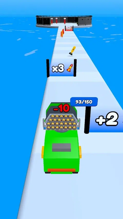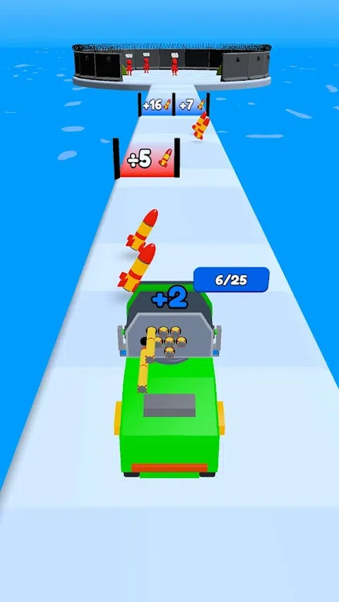 驾驶导弹发射车并在途中收集导弹,收集尽可能多的导弹,一旦轨道结束,就开始向敌人的波浪发射导弹,最终摧毁老板以赢得关卡。 每次尝试升级您的车辆能力(导弹计数、速度和伤害)并重试,直到到达敌人头目