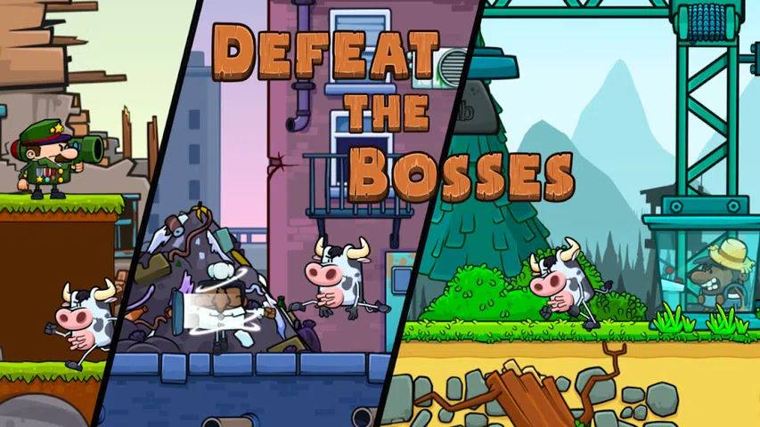 牛对人! 奶牛受够了农民,他们在农场强迫自己的同类,你的任务是将它们从囚禁中解放出来。 一款全新的冒险游戏,像老派经典游戏一样有趣。 奶牛的英雄需要您的帮助,以便在平台上奔跑,跳过障碍物并击败危险的敌人。 让我们看看这个经典平台游戏中有什么: +3 集 -农场:你的首要任务是与农民作战。他们会用他们的投球或来福枪和斧头攻击你。最后,你将不得不挑战他们的老板。 -城市:城市中的商人也想使用奶牛。粉碎城市并占领他们的商店。 -:如果你能打败他们所有人,军队将介入并用炸弹或火箭攻击你。尽你的努力战胜他们的指挥官。 +超酷的卡通图形 +简单的控制 +令人兴奋的音乐和声音效果 滚过岩石球,跳过尖刺,粉碎金块。摧毁人类世界的红线,成为超级英雄。 感谢您的参与