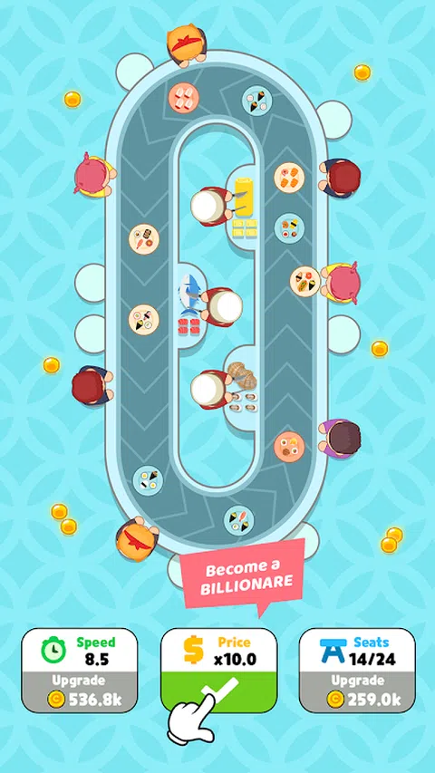 您准备好管理自己的寿司吧了吗?如果您是梦想成为成功企业家的寿司爱好者,那么这将是您的游戏。 《寿司吧狂热:空闲烹饪》是一款令人兴奋的手机游戏,挑战您成为寿司大师!在这个游戏中,您将拥有并管理自己的寿司吧和餐厅。 从东京市中心的一个小型基本寿司吧开始,但是随着游戏的进行,您可以升级您的酒吧、厨师和寿司菜肴,以赚取更多利润并吸引更多顾客。您赚的钱越多,您在全球开设的特许经营店就越多,并成为最富有的寿司大师。 如何玩: - 解锁并升级著名厨师 - 升级并准备不同类型的寿司 - 疯狂的道具以提高您的利润。 游戏特色: - 疯狂的助推器,使您的收入成倍增加。 - 出色的动画和可爱的 2D 图形。 - 令人兴奋的每日任务和特殊活动等您来参加。 寿司吧狂热:空闲烹饪是一款有趣、令人上瘾且具有挑战性的手机游戏,可让您娱乐数小时。无论您是寿司爱好者,还是只是在寻找有趣的游戏,这款游戏都能满足每个人的需求。 那为什么要等待?立即下载《寿司吧狂热:闲置烹饪》,开始成为寿司大师的旅程