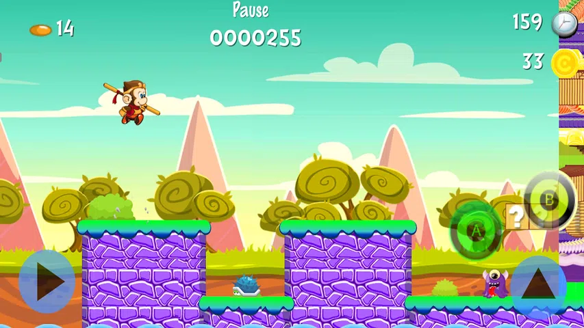 踏上史诗般的旅程,穿越孔斯王国的迷人世界!在这款迷人的 2D 平台游戏中,您将扮演勇敢的主角,在充满来势汹汹的怪物、狡猾的敌人和具有挑战性的障碍的危险景观中航行。你的任务?为了克服这些障碍并完成每个级别,一次一个飞跃。 准备好被孔斯王国充满活力和想象力的世界所吸引。穿越茂密的森林,在危险的洞穴中穿行,探索神秘的废墟,揭开这个迷人王国的秘密。每个级别都呈现出设计精美的独特环境,您会发现自己沉浸在视觉上令人惊叹的冒险中。 当您穿越孔斯王国时,您会遇到各种各样的生物挡路。跳过可怕的敌人,躲避他们的攻击,并用敏捷的动作战胜他们。每个敌人都面临着独特的挑战,需要快速的反应和精确的时机来克服。 但是,阻碍您前进的不仅仅是敌人。Kongs Kingdom 充满了巧妙设计的障碍和障碍,将您的平台技能发挥到极致。跨越危险的鸿沟,从藤蔓上荡来荡去,在错综复杂的迷宫中穿行。每个级别都是一个等待解决的难题,您的灵巧和解决问题的能力将是征服它们的关键。 在你的旅程中,收集能量增强器和特殊物品,以帮助你完成任务。解锁新能力,增强您的机动性,并为您提供克服挑战的新方法。发现提供有价值奖励的隐藏路径和秘密区域,揭开孔斯王国的奥秘。 Kongs Kingdom 具有迷人的配乐,增强了身临其境的游戏体验。当您穿越异想天开的风景时,有节奏的旋律和动态的声音效果将使您全神贯注并充满活力。 瞄准最高分和最快完成时间,进一步挑战自己。在在线排行榜上与来自世界各地的朋友或玩家竞争,证明自己是平台。 您准备好在孔斯王国进行一次难忘的冒险了吗?立即下载游戏,体验经典 2D 平台游戏的快感,您的敏捷性、机智和决心将带领您走向胜利