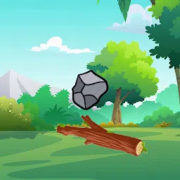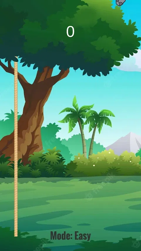 用棍子撞到绳索中。 触摸屏幕以将棍棒放在所需的位置。 您的任务是击中绳索上的岩石。 不要打苹果