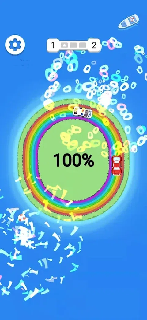 尝试越过或绕过警车以达到终点线