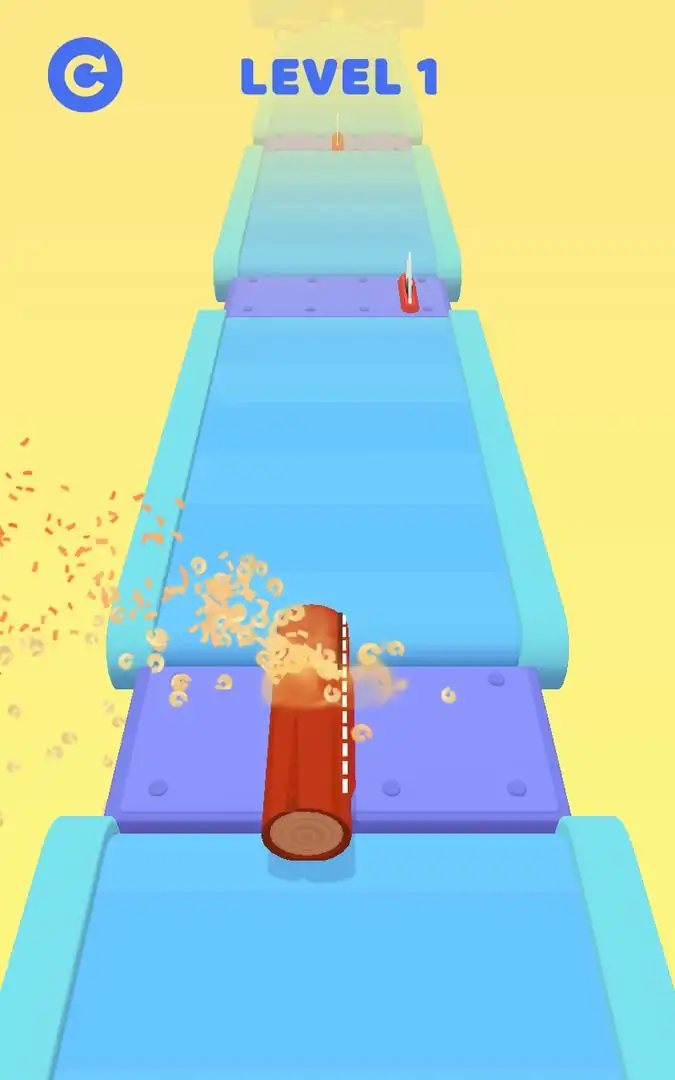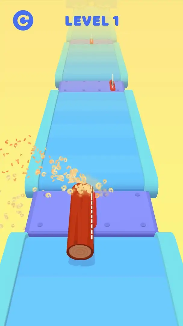 Сut原木并将其正确修整以使其适合锯木厂末端的插槽。您越准确,您的分数就会越高。用手指在屏幕周围移动木头。