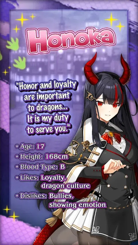 ■概要■ 从普通人到受训巫师 - 在你在回家的路上救了一个陌生人的生命后,你的生活被天翻地覆,现在你是一个向你发誓永远忠诚的龙女孩的主人!不过,事情并没有放慢速度,因为您很快就会发现自己实际上是一名巫师,并且您已被邀请到迪根学院(Deagon Academy)来磨练您崭露头角的魔法技能。 您可能是魔法世界的新手,但是有三个美丽的同学为您加油,您怎么能失败呢?真正的问题是,这些女孩中的哪一个得到了你的“通行证”? 这个令人兴奋的三部分系列的第 1 部分目前可用!请务必在本月晚些时候回来查看第 2 部分! ■角色■ Honoka - 安静但忠诚的龙 你以为只是一个被欺负的无辜女孩,结果是一条名叫 Honoka 的龙