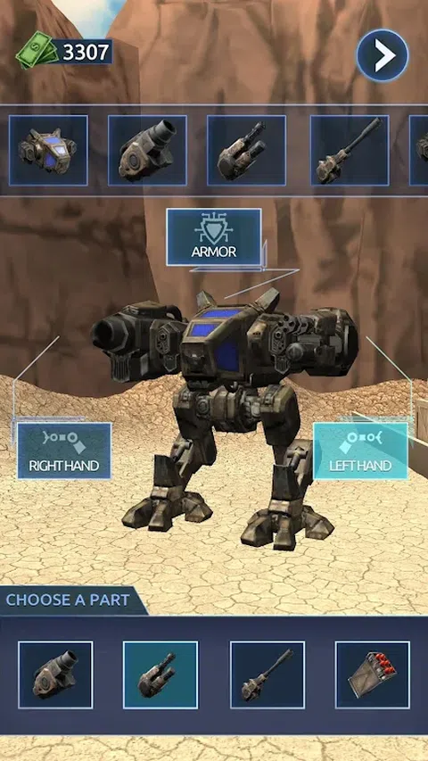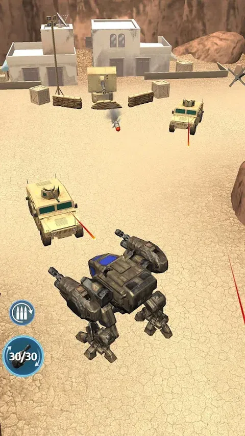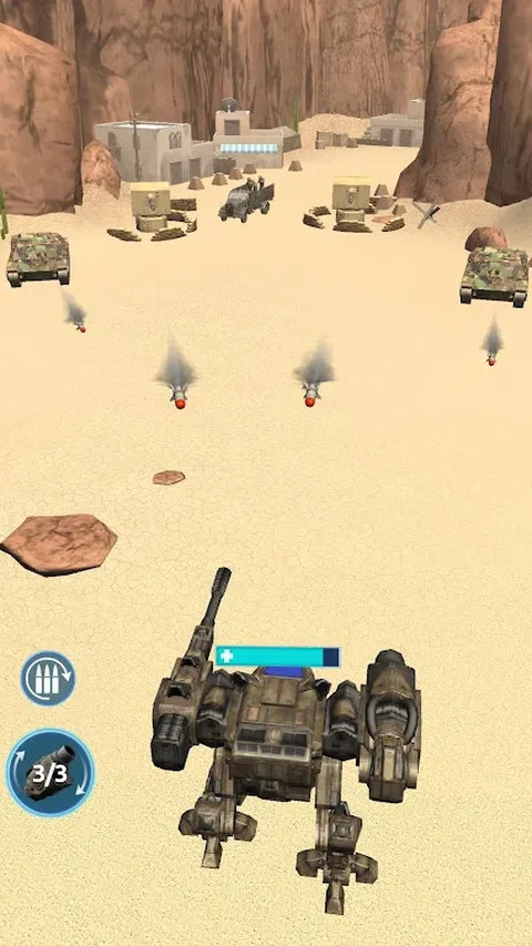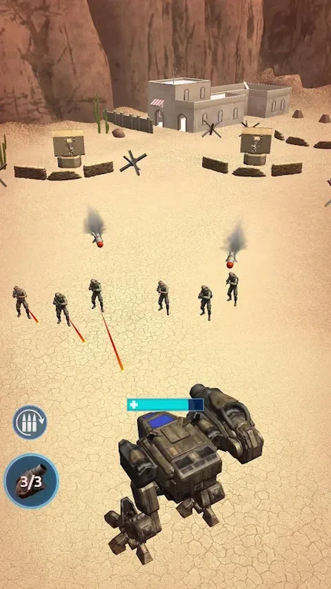 驾驶最强大的战争机器,在敌方领土上完成危险的任务。 自己建造机甲,选择最适合你战斗风格的部件。使用各种武器和船体选项学习游戏策略。 与步兵、坦克、直升机、飞机等作战! 射击,爆炸,混乱!使用榴弹发射器、机枪、步枪。升级它们,使其在战场上更加危险。更换武器并用双手射击,躲避敌人的导弹。而这一切只需一根手指。 完成各种任务,赚取货币,变得更强大,并越走越远,直到对手没有机会。 向敌军展示技术先进的装甲服的力量