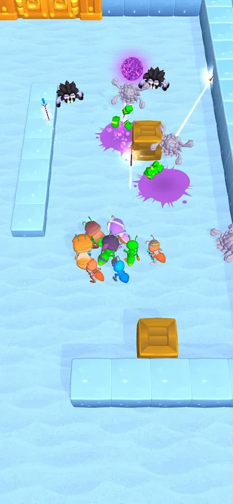 游戏玩法基于创建蚂蚁,以便在关卡中与蜘蛛进行进一步战斗。在关卡开始之前,会为玩家打开一个字段,供玩家合并和购买蚂蚁。在这个场地上,玩家可以购买一只随机蚂蚁,蚂蚁将在购买后立即在场地上产卵。蚂蚁可以分为 3 种类型: 弓箭手 - 伤害低,但射速很高。也有很小的生命值。 酸 - 具有平均伤害,平均射速。拥有平均生命值。独特能力 - 酸性炮弹在与敌人接触时爆炸,造成区域伤害。 矛兵-具有高伤害,低射速。拥有大量的 HP。独特的能力 - 长矛可以刺穿敌人并飞出去,或者如果敌人被长矛杀死 - 则敌人会骑在长矛上并与长矛一起飞得更远。除了首领和强大的敌人。 关卡中的敌人成波生成,让玩家在关卡中的战斗之间有短暂的喘息时间。玩家仅在站立时攻击敌人,即游戏中没有奔跑攻击。每隔几个级别,玩家就必须与老板战斗。 玩家目标和胜利条件: 玩家必须使用合并机制来开发单元,以在竞技场中与蜘蛛作战。目标是竞技场上的敌对蜘蛛,并收集强大的蚂蚁。 加入蚂蚁合并:蜘蛛殖民地战争并指挥您的! 准备在迷人的 Ant Merge:Srider Colony War 世界中进行身临其境的征服。作为蚂蚁的指挥官,您的任务是带领您的小队与威胁您的殖民地的来势汹汹的蜘蛛进行史诗般的战斗。通过创新的合并机制发展你的部队,利用他们的独特能力,向你的敌人释放猛烈的火力! 战场等待着你的战略才华。在每个级别之前,会打开一个广阔的领域,您可以合并和购买蚂蚁。明智地选择,因为每种蚂蚁类型都将其独特的属性带入战斗。 弓箭手虽然伤害低,但拥有快速的射速,可提供连续的攻击流。但是,它的生命值有限,需要您有策略地部署它们以实现效果。 另一方面,酸性蚂蚁以平均的射速和生命值造成平均伤害。然而,其独特的能力使其与众不同 - 酸性炮弹在接触时爆炸,造成区域伤害,对敌人造成混乱。 长矛兵是力量的缩影,具有高伤害和可观的生命值。它的低射速强调了一种更加深思熟虑的方法,使每次攻击都有意义。长矛的独特能力增加了惊喜元素,因为它可以刺穿敌人,一举将其消灭。它还可以刺穿倒下的敌人,对随后的对手造成伤害。 为每个级别产生的一波波敌人做好准备,在无情的战斗之间为您提供短暂的喘息机会。作为一名战术家,您会发现自己站稳脚跟,有效地与敌人交战。进行攻击不是一种选择,因此请仔细计划您的动作。 征服地下战场,征服阻挡你的殖民地的蜘蛛。合并你的蚂蚁,加强他们的队伍,并向你的敌人释放强大的力量。每次胜利都使您更接近于敌对蜘蛛的竞技场,并组建一支将恐惧打入敌人心中的。 但是要当心,强大的首领就在眼前。随着您的进步,准备在史诗般的对决中面对这些具有挑战性的对手,这将限度地测试您的技能。只有通过战略实力和不懈的决心,您才能取得胜利。 Ant Merge:Srider Colony War 融合了刺激的动作,激烈的战斗以及复杂的合并,营造出令人上瘾的游戏体验。称霸战场,捍卫您的殖民地,并拥抱征服者的道路。 你准备好带领你的蚂蚁在这场史诗般的生存之战中取得荣耀和胜利吗?立即指挥并下载 Ant Merge:Srider Colony War