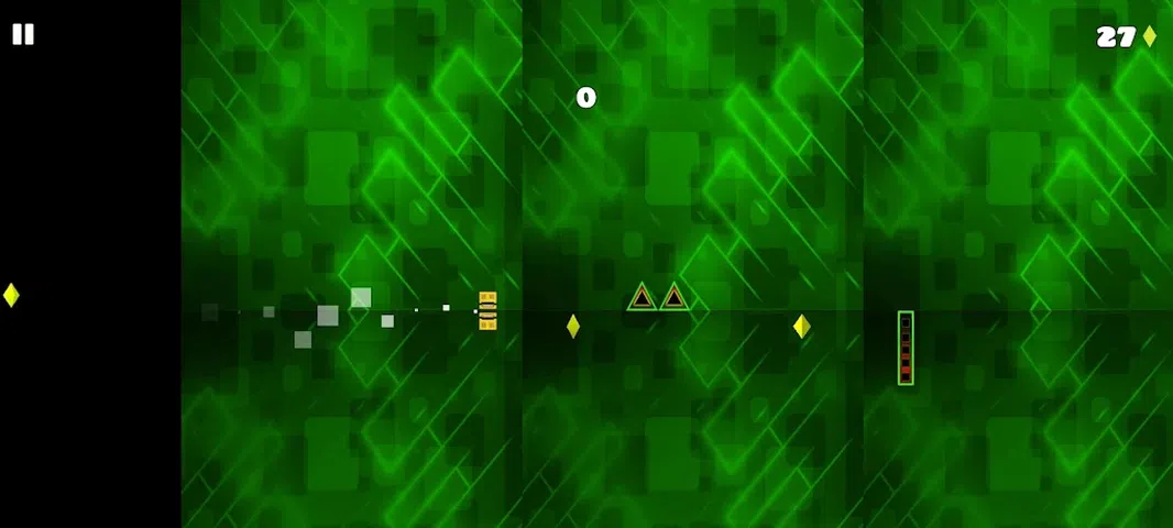 在这款游戏中,你扮演一个立方体,在充满几何形状的星系中移动,带来有趣的骑行。为了生存,你必须通过点击屏幕来避开它们。 尽管游戏玩法几乎相同,但此版本不如其前身完整。在游戏中,您只需要避开障碍物即可到达尽可能远的地方。没有关卡,没有目标 - 在这个游戏中,距离才是最重要的。 随着游戏的推进,您可能会发现三角形、立方体和矩形,它们会让您感到困难。为了避开它们,您必须在正确的时间点击屏幕,并正确估计距离。如果你能避免这一切,你也必须专注于不落入虚空。前进的方法是以正确的方式组合您的动作。 如果您玩得好,您的立方体将在几秒钟内坚不可摧,因此您可能会意外崩溃而不会输掉游戏