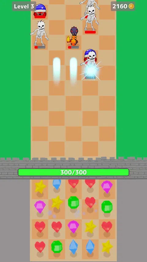 这是一款与塔防游戏相结合的全新三消益智游戏。 您必须进行尽可能多的匹配,以保卫您的城堡并攻击您的敌人。您进行的连击越多,您将摧毁的敌人就越多。 如果您被击败了,请不要担心。使用您赚到的硬币升级自己,为下一场战斗做准备
