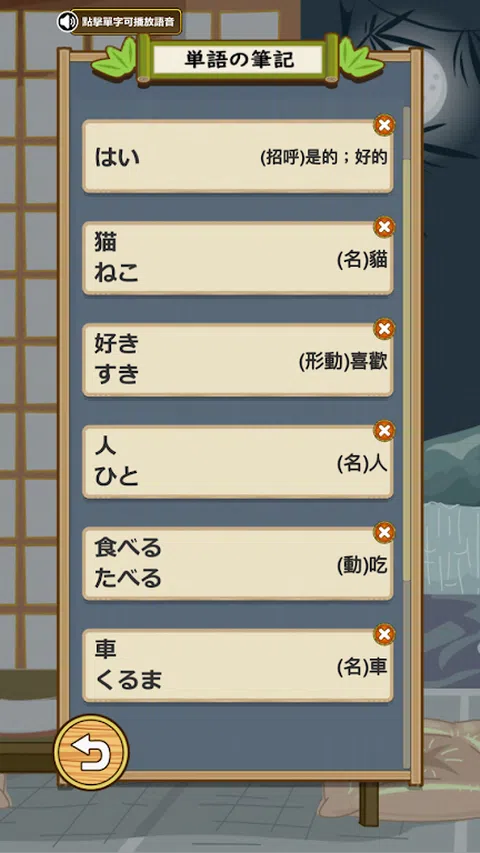 《 日语达人》- 轻松学日文的必备APP! ■ 结合游戏与学习,以全日本许多知名景点作为冒险舞台,趣味的猫咪们将陪伴玩家一边冒险一边学日文! ■ 收录数千个JLPT日本语检定N5~N1必考单字。 ■ 所有单字皆为日本老师真人标准发音! ■ 达成指定成就,搜集日本代表纪念宝物! ■ 自由搭配游戏介面■ 世界排行榜 - 与各地高手角逐学习名次吧