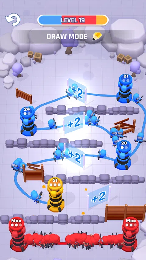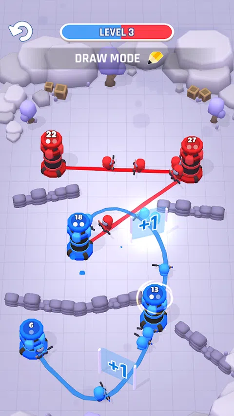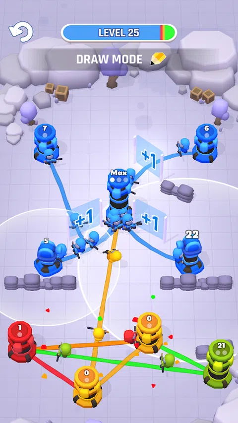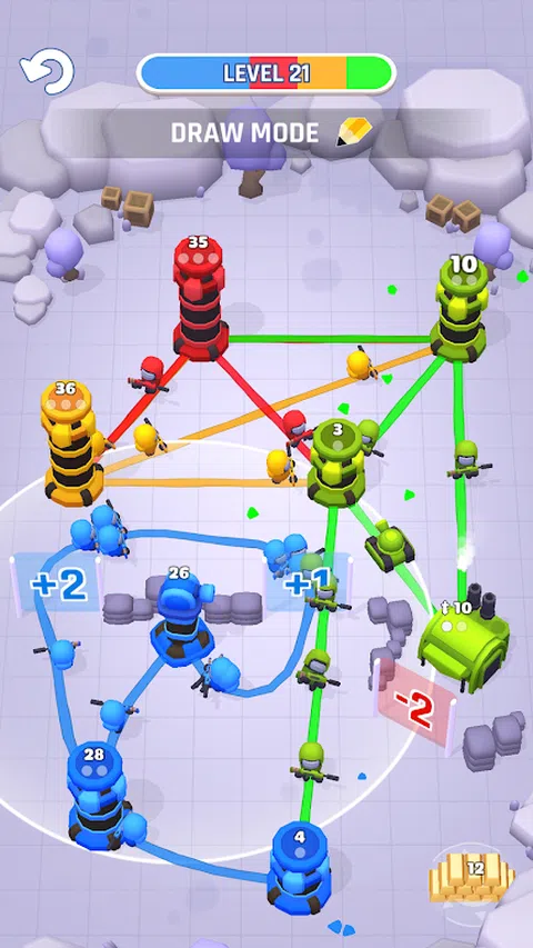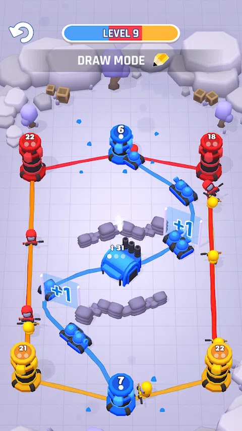 你在哪里画线? 在这个史诗般的新休闲策略游戏中,自己绘制战线,其中每个级别都是一场高度战术性的战争,旨在绝对统治敌人的塔楼。带着战士的热情,参加一场激烈的战术塔战,看看你的滑稽、无畏的士兵如何凭借你的战略技能征服敌人!现在,您可以绘制攻击线以占领对手的塔楼,并在这款具有战术转折的令人敬畏的新塔防游戏中继续您的胜利战役! ? ?绝对独特的战争体验? ? 战线由您绘制,无论您想去哪里!与传统防御游戏不同,《塔楼战争 - 平局》让您可以决定并准确绘制您希望采取的路径,这样您就可以在正面攻击中正面迎战敌人,或者轻松地包抄敌人并直接前往下一个塔。哪种策略最有效?您必须玩游戏才能找到答案。 ? 全谱战争:游戏开始时,您仅与一个敌人作战以占领塔楼,但很快您会发现自己与两支、三支甚至四支军队作战。当棋盘上布满了彩虹般的多彩线条时,你将需要所有的战术智慧才能在所有方面获胜。 ? 的攻击形式是防御,因此在开始征服敌人之前,请集结并确保自己的塔楼得到严密防御。即使当你寡不敌众时,凭借战术思维和精心绘制的攻击线,你仍然可以通过完全占领敌人的塔楼来赢得战斗。 ? 坚守阵地,抵御所有类型的攻击!很快你将面对特种、坦克和大炮,如果你想赢得战斗,你必须找到一种策略来对付他们并全面占领该地区。 ? 线上干扰:您不仅要与敌军作战,战场上还充斥着其他障碍和特征,包括危险的地雷、坚固的路障以及可以增加或减少前进士兵数量的门户通过他们。 ? 赢取幸运抽奖