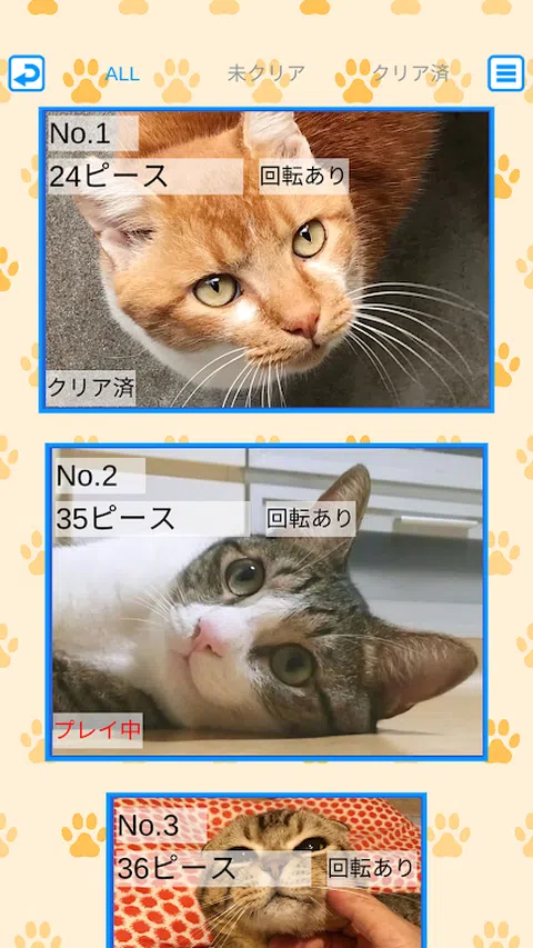 一个充满可爱猫咪的拼图游戏,您可以免费玩。 *抽奖服务已结束。 由于碎片没有杂乱,很容易找到所需的碎片。 当您将棋子放在正确的位置时,我们特别注重感觉。 超过 200 个拼图游戏!最容易玩的Normal的难度级别令人满意