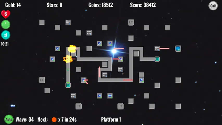 一款战略性塔防游戏,您可以用激光束杀死敌人。 使用镜子、棱镜和瞄准塔将激光塔激光束反射到正确的方向。 通过尽可能多的波浪生存来收集黄金和星星。在研究中明智地使用它们以改进您的塔。 游戏学习教程。 您必须更加灵活,并战略性地放置您的塔,以在尽可能多的波浪中生存。 这并不像看起来那么容易