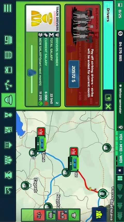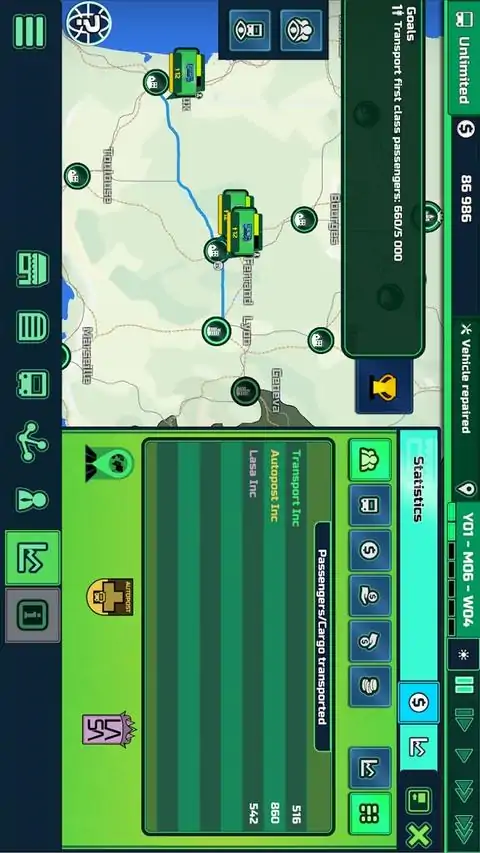 ★ 运输公司 ★ Transport INC. 是一款关于管理、竞争、经济,尤其是物流的游戏。利用您的技能将您的运输公司推向顶峰。连接世界各地的首都。观察并适应经济形势。如果某些事情没有按计划进行,请迅速做出必要的改变。通过破坏其他公司来公平或肮脏。在 Transport INC.,您选择赚取利润的路径是您自己的选择。 ★ 车辆 ★ 从卡车和公共汽车到火车和飞机的许多不同类型的车辆中进行选择。购买能带来最大收入并在竞争中的车辆。通过升级您的设备,确保您的乘客获得所需的舒适度和速度。向他们收取额外的费用,或者让您的票价保持低廉且具有竞争力。 ★故事模式★ 跟随一位好心的父亲和雄心勃勃的儿子的艰辛旅程,他们在开始新公司时努力调整他们相互冲突的个性。他们是否能够克服分歧,共同打造繁荣的企业,还是会动辄战斗而失败? ★免费游戏模式★ 选择众多起始国家之一作为您的起点,设置您的胜利条件、车辆类型等。独自享受旅程或与多个对手竞争。玩完全自定义的游戏。 ★全球竞赛模式★ 世界各地的运输乘客在城市中赚取利润以吸引他们。尽可能快地扩展和运输。第一个占领目标城市数量的玩家获胜。 ★ 主要特点 ★ · 管理您的车队并从 3 个类别的 27 多种车辆类型中进行选择 · 在现实世界地图上统治道路 · 提防突发事件,把握机遇 ·自己玩或与对手对抗 · 用 4 种不同的难度选项挑战自己 · 升级和现代化你的每辆车,以于你的竞争 · 租用办公室并聘请经理为您照看车辆 · 调整工资,让工人开心以避免罢工 · 存钱,或借钱继续前进 · 为新的车辆类型和地区购买许可证以扩展您的业务