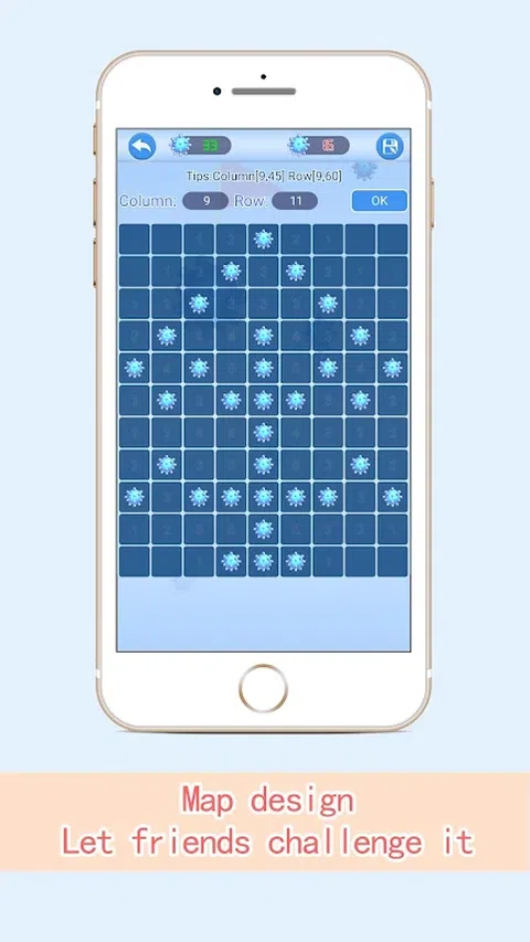 玩法:在地图上的某些方格下藏有地雷,你需要根据地图标注的数字信息来扫清所有的地雷。 点击地图方格可以打开该位置,(你的第一次点击永远是安全的,不会踩到雷), 打开之后方格上显示的数字表示,在当前方格周围包括对角的8个位置中,藏有地雷的数量。 你能获得的只有这些信息,如果你确认某个位置一定有个地雷,那就长按那个位置,放置个旗帜进行标记吧。 1:经典模式,8个难度等级,地图和地雷数量依次增加,需要有很强的逻辑思维能力才能过关哦。 2:你藏我找,你来设计地图,布置地雷陷阱,完成之后可以让你的朋友来破解它,考验一下朋友解谜的能力吧。 3这里是玩家设计的不同的地图集合,展示,难度一看便知,选择任意一个挑战它吧? 我们与众不同之处! 你可以自由设计扫地雷的关卡,设计完成后,保存即可分享给全球的玩家,让他们来挑战找出你埋藏的地雷。 你又一个的6位字符串,你的朋友可以直接通过此字符串找到你的设计。乐趣无限