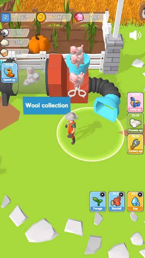 在这个农场中,你的主要工作是放牧绵羊,收集羊毛,加工羊毛,赚钱后购买更多的绵羊。您还可以升级草地,升级工厂,加油以建立繁荣的绵羊农场。你可以做到! 游戏特色: 1.模拟操作 2.可爱的画风 3