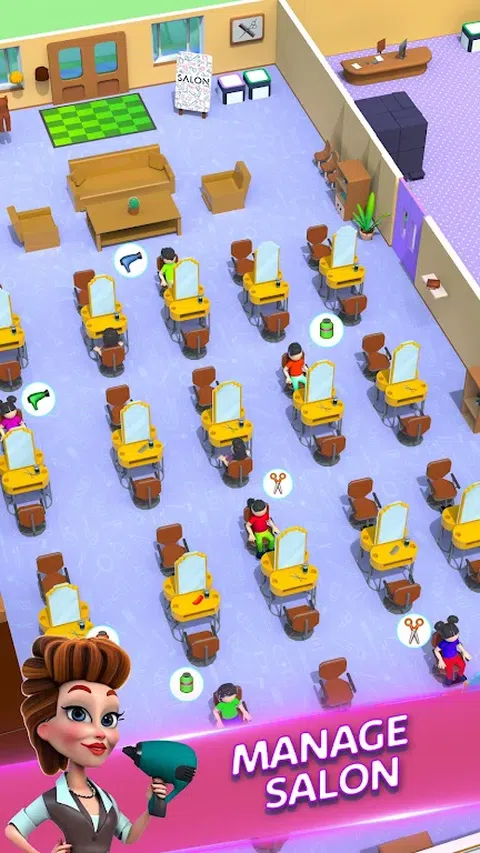 准备好管理闲置的美发沙龙了吗?逐步建立您的美发沙龙大亨?,吸引越来越多的新客户,赚取更多利润,并成为美容院大亨!接受挑战并致富,同时作为闲置的美发沙龙大亨游戏 ? 经营您的家族企业! 从您祖父的旧家具开始,努力工作,提高您的声誉。改善每个细节,将您的小型美容护理企业转变为时尚的美发沙龙大亨,能够以最具创新性的美发技术取悦各种客户! 处理您的设施需求,并做出正确的决定,以扩大您的美甲沙龙?美容护理业务,并为您的场所带来名声和声望:定制和更改装饰;实施新的美发服务;提供新的胡须、小胡子和发型;使用美发用品,如凝胶、吹风机、梳子、刷子、剃须刀片或新的染发剂…做出选择,看看它们对角色进化的影响! 您还可以解锁新的美容物品,以扩展您的美容美发沙龙业务!不仅如此,为什么顾客会神秘失踪?美容院发生了什么神奇事件?为什么员工突然露出獠牙?还有各种有趣而难忘的活动等着您来发现! 美容美发沙龙大亨:闲置美发沙龙游戏?是一款新的免费闲置美容院模拟游戏。您准备好成为美发沙龙大亨了吗?发展您的商业帝国,在这个模拟天堂享受您的旅程