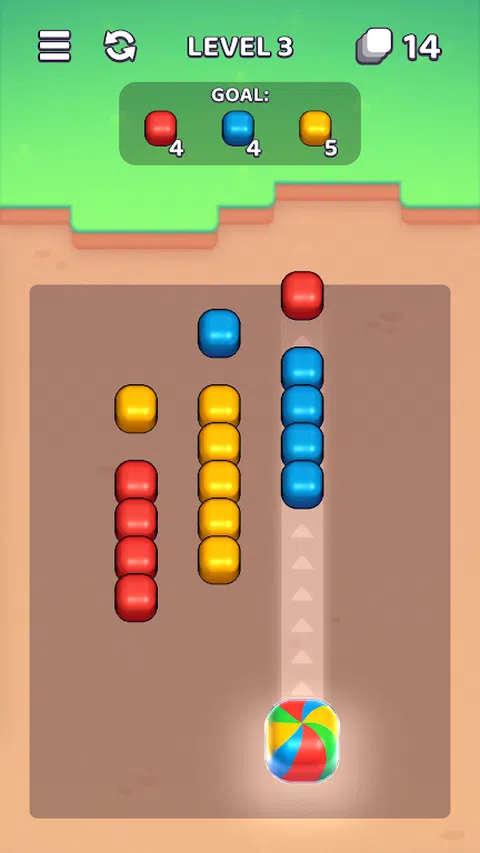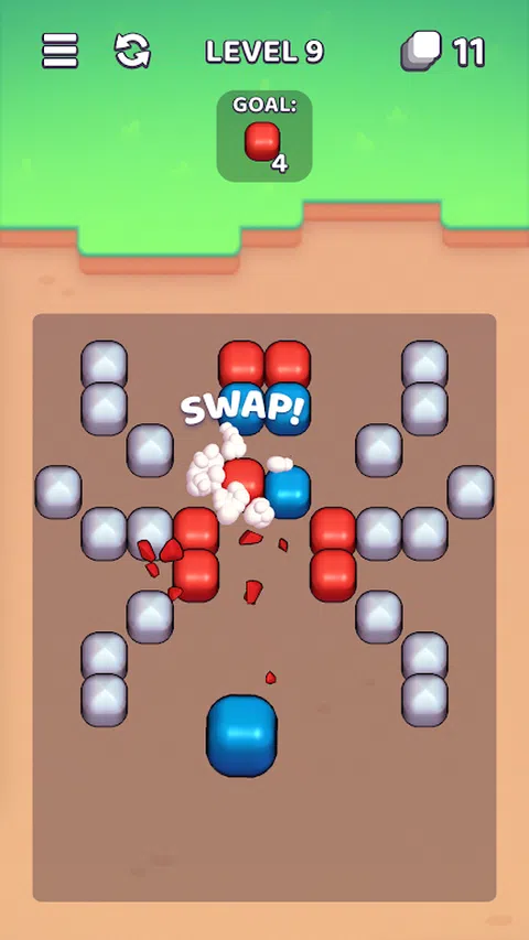 欢迎来到令人兴奋的彩色方块世界!你在这个游戏中的目标是通过摧毁方块来清除游戏场地。要摧毁特定颜色的方块,只需向其扔一个相同颜色的方块即可。如果旁边还有另一个相同颜色的方块 - 它们也会消失! 在每个级别中,您需要销毁一定数量的方块。注意并尝试组合移动,一次消除尽可能多的方块。您在一次移动中摧毁的方块越多,您获得的积分就越多。 随着关卡的推进,会出现越来越多的新方块颜色,谜题也会变得更加困难。你需要灵巧、机智和计划行动的能力,以完成这个明亮而令人兴奋的游戏。准备好测试您的颜色组合技能!继续前进,战胜棘手的方块