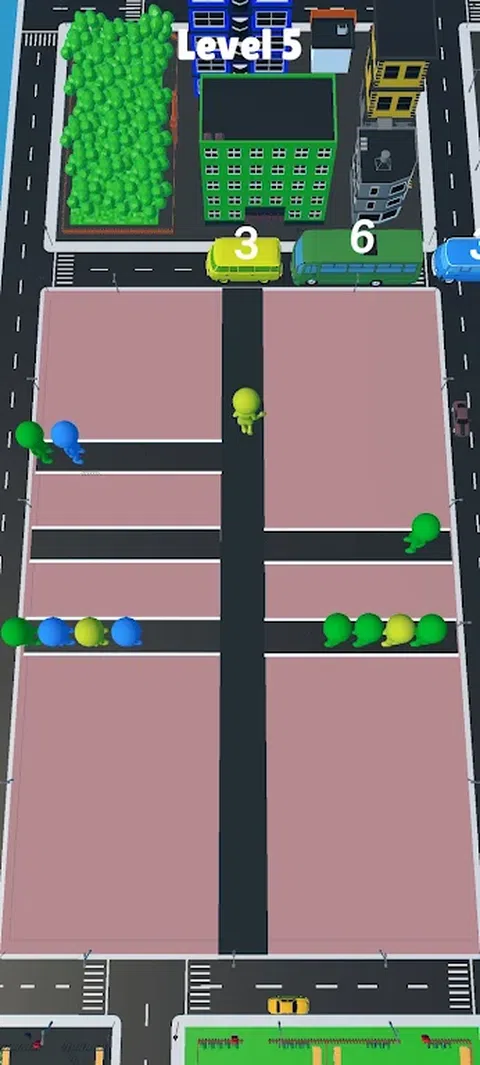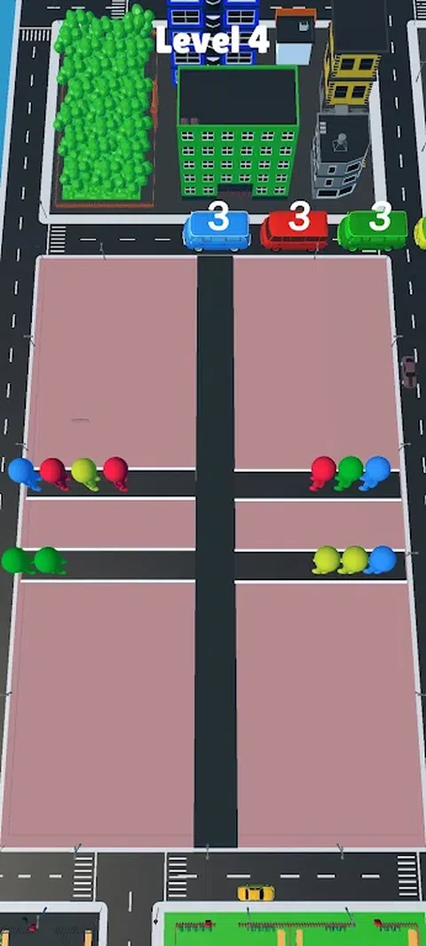 根据颜色将人们分类在自己的区域,并尝试将他们放在即将到来的车辆上。执行此操作时,请务必派遣适当数量的有色人种